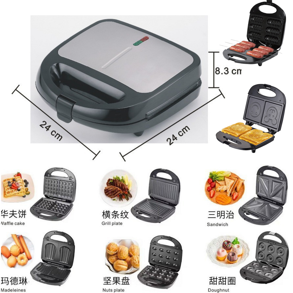 유럽 표준 국경 간 3-in-1 샌드위치 기계 아침 식사 기계 양면 가열 다기능 토스트 와플 기계 6-in-1