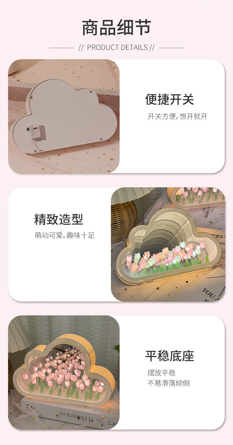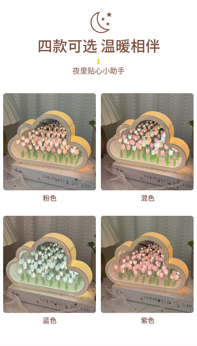 구름 거울 튤립 나이트라이트 DIY 수제 꽃 바다 생일 보내기 여자 가장 친한 친구 발렌타인 데이 공장 공급