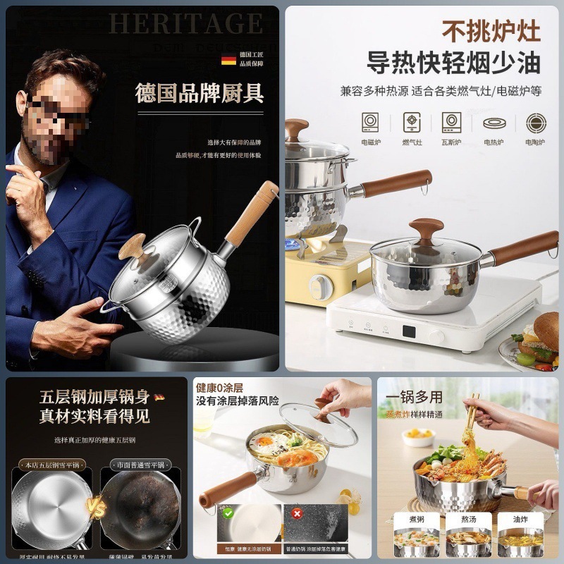 코팅되지 않은 스노우 플랫 냄비 스테인레스 스틸 일본 우유 냄비 이유식 보충 냄비 우유 국수 요리 붙지 않는 작은 냄비 일본과 한국에 있음