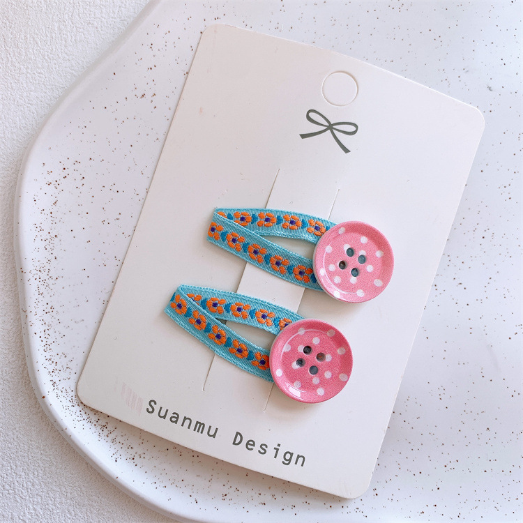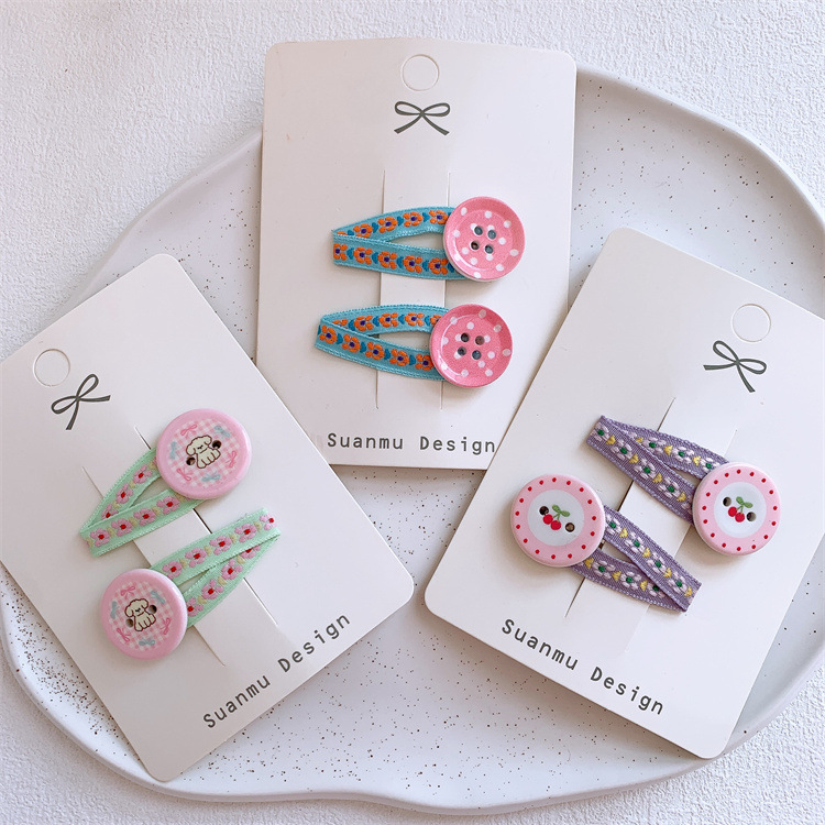 새로운 어린이 버튼 만화 과일 수 놓은 꽃 헤어핀 달콤한 소녀의 뱅 클립 측면 깨진 머리 BB 클립