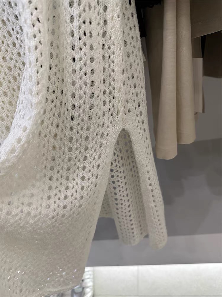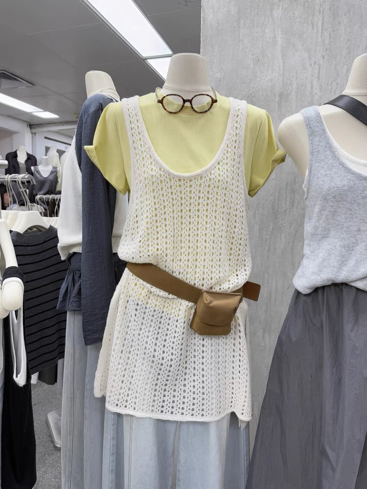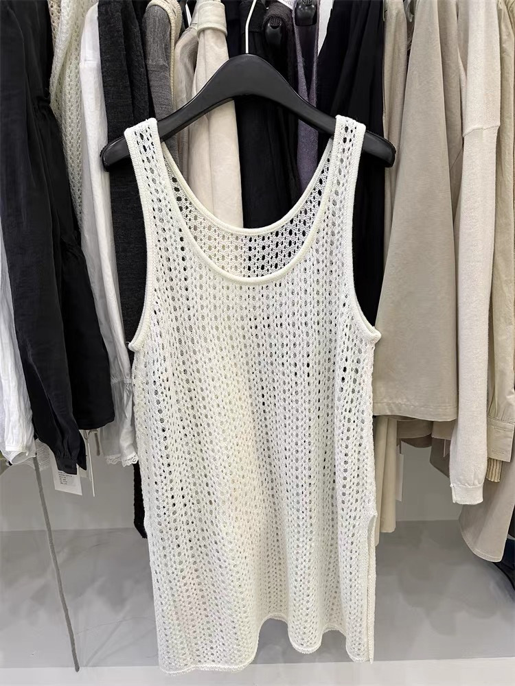 이른 봄 U-넥 조끼 스커트 할로우 캐주얼 니트 조끼 스택 느슨한 한국 스타일 사이드 슬릿 미디 블라우스 여성스토어 가기