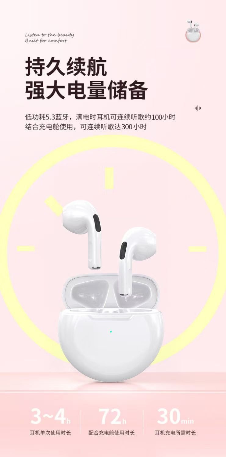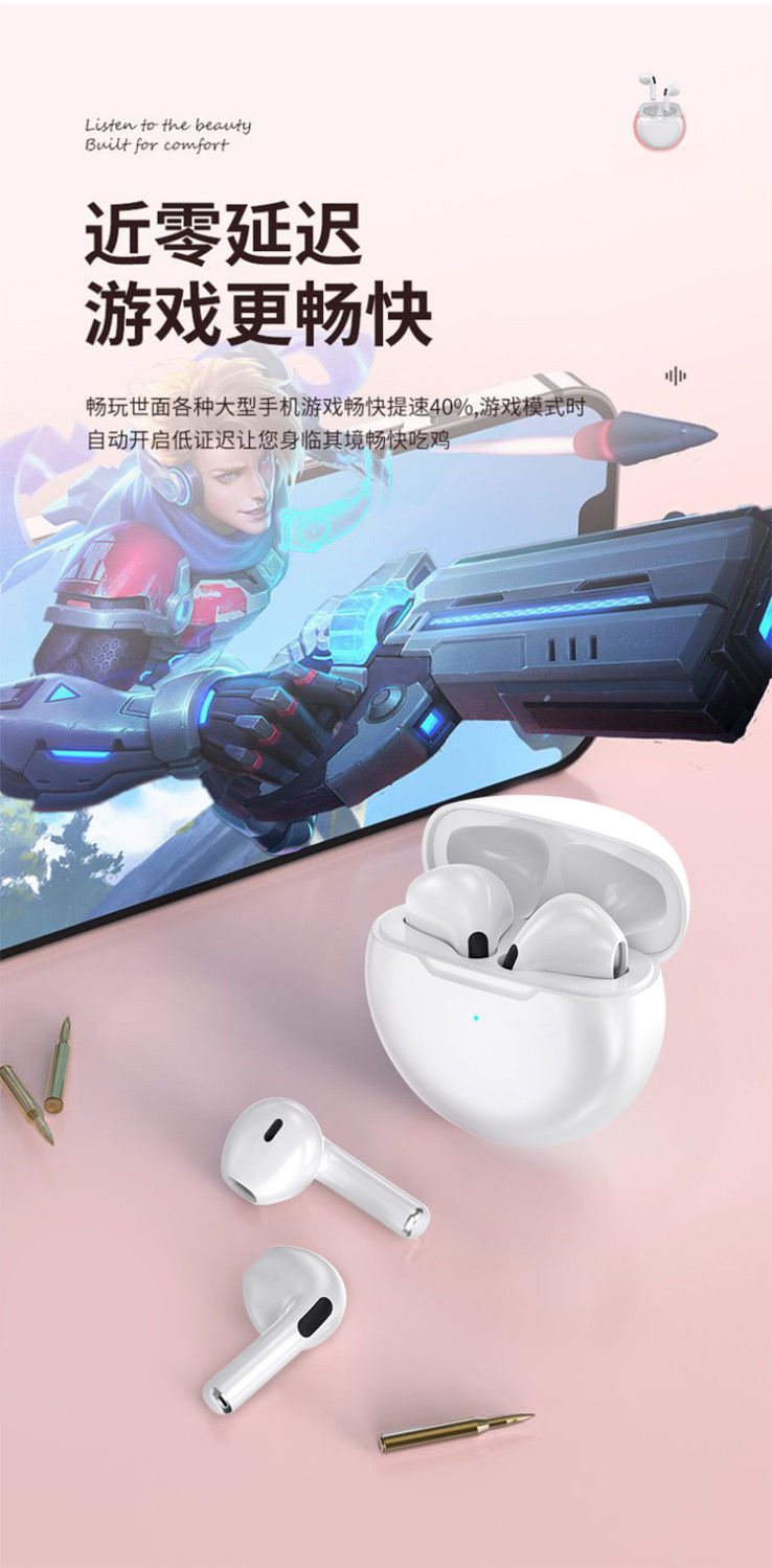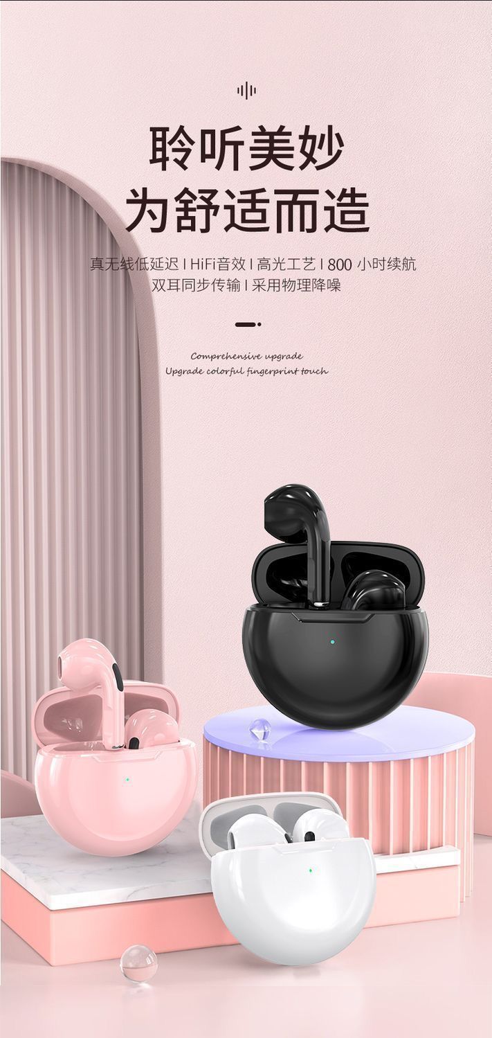 국경을 넘는 신제품 pro6 블루투스 이어폰 무선 방수 인이어 노이즈 캔슬링 미니 초장시간 배터리 이어폰