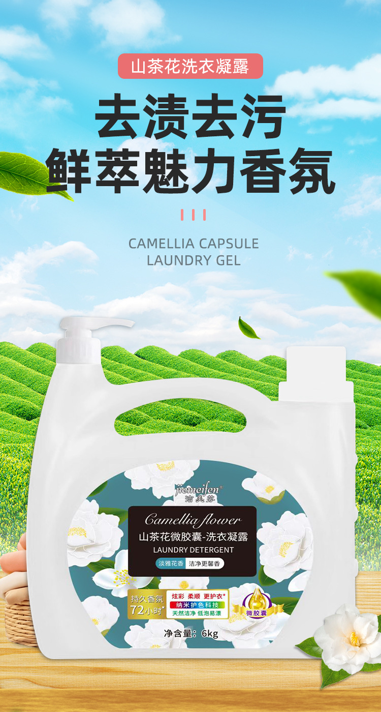 [13.99 위안 6kg ] 동백 세탁 세제 오래 지속되는 향기 딥 클렌징 가족 대형 배럴