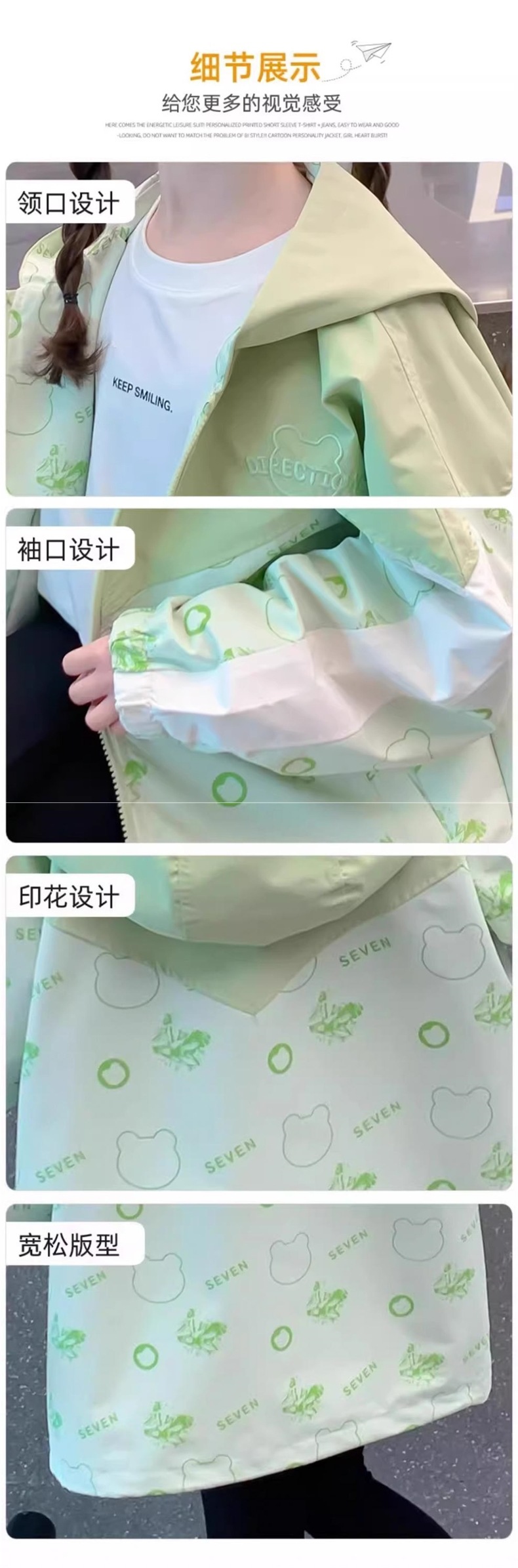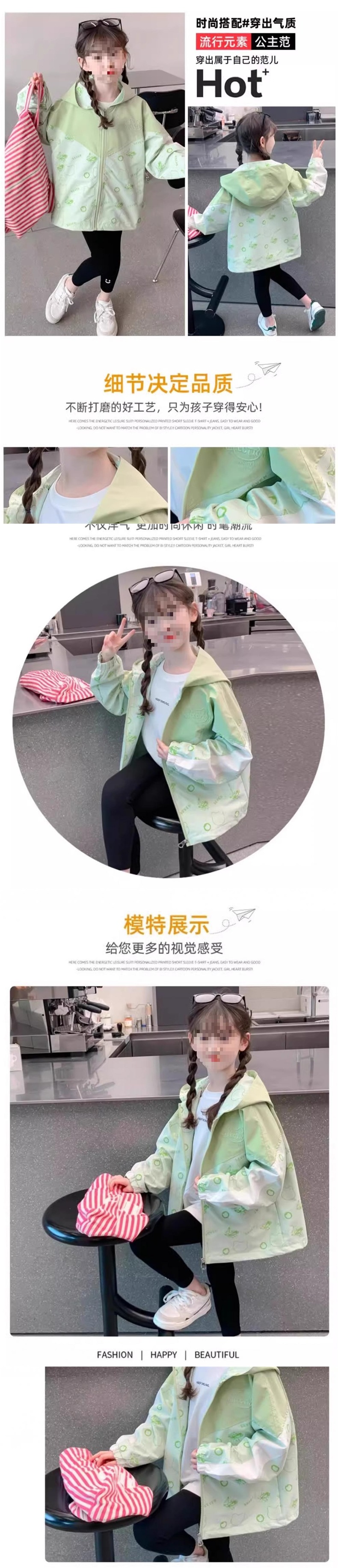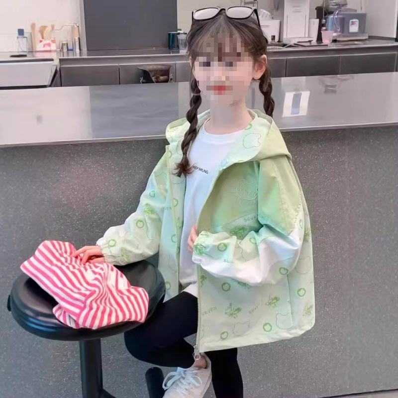 여자 봄 재킷 2024 새로운 어린이 스타일 여자 봄, 가을 후드 봄 만화 곰 재킷 내구성