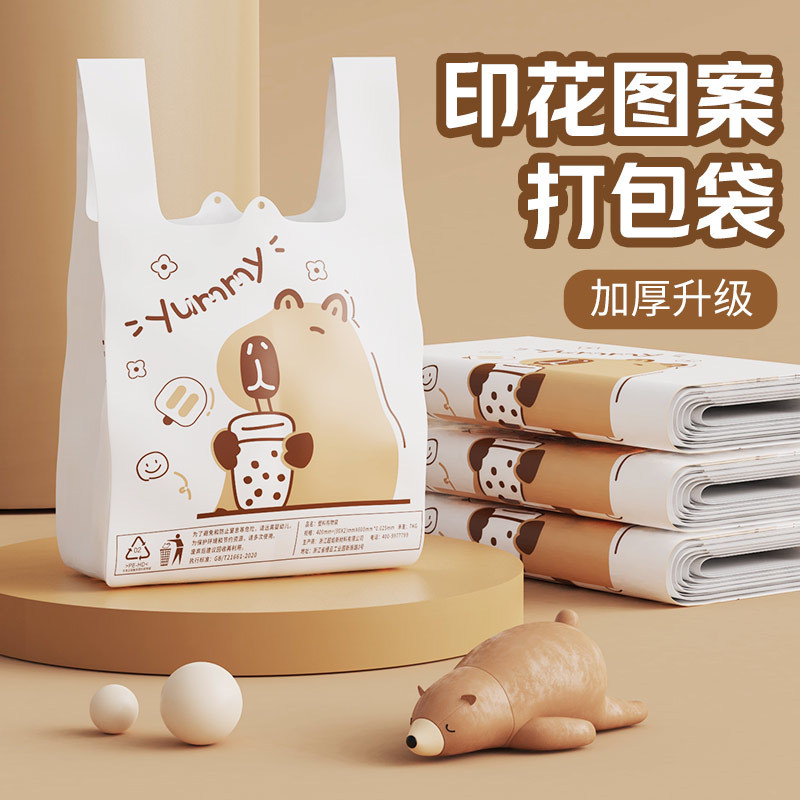 Kapibala 비닐 봉투 핸드백 선물 쇼핑백 테이크 아웃 포장 가방 가정용 휴대용 쓰레기 봉투 도매