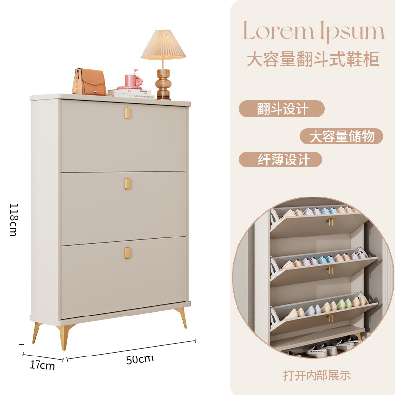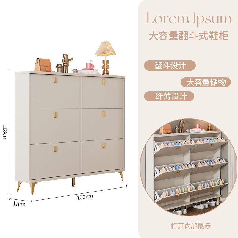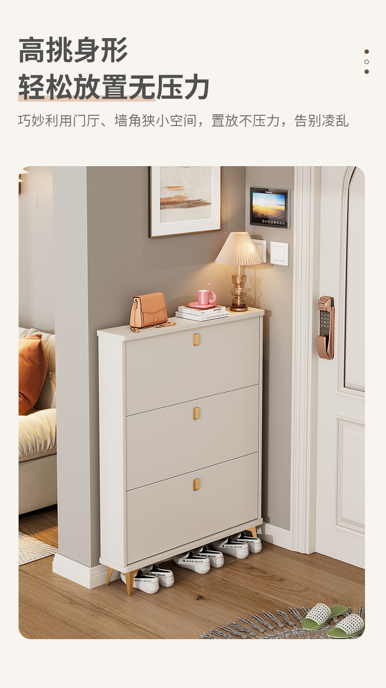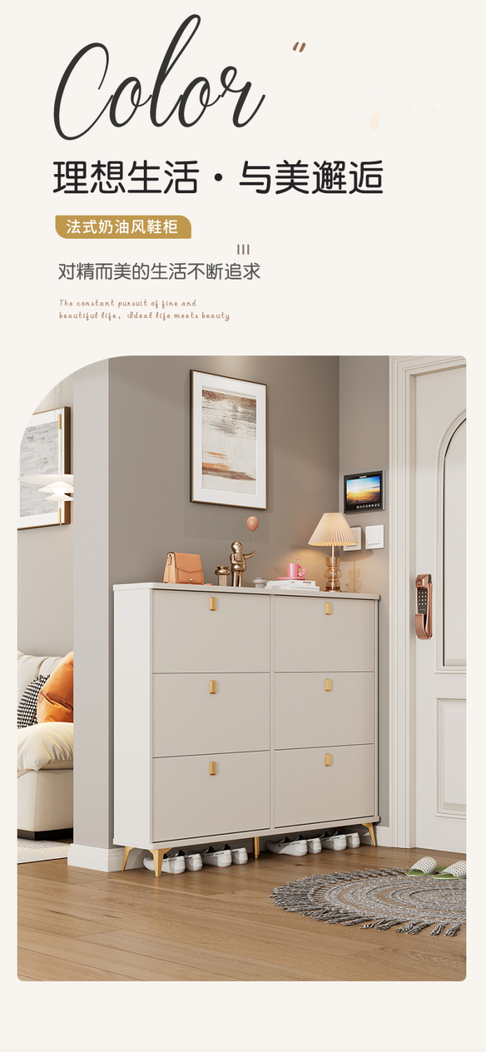 크림 스타일 초박형 신발 캐비닛 가정용 도어 입구 저장 입구 캐비닛 통합 벽 복도 발코니 입구 홀 신발 랙