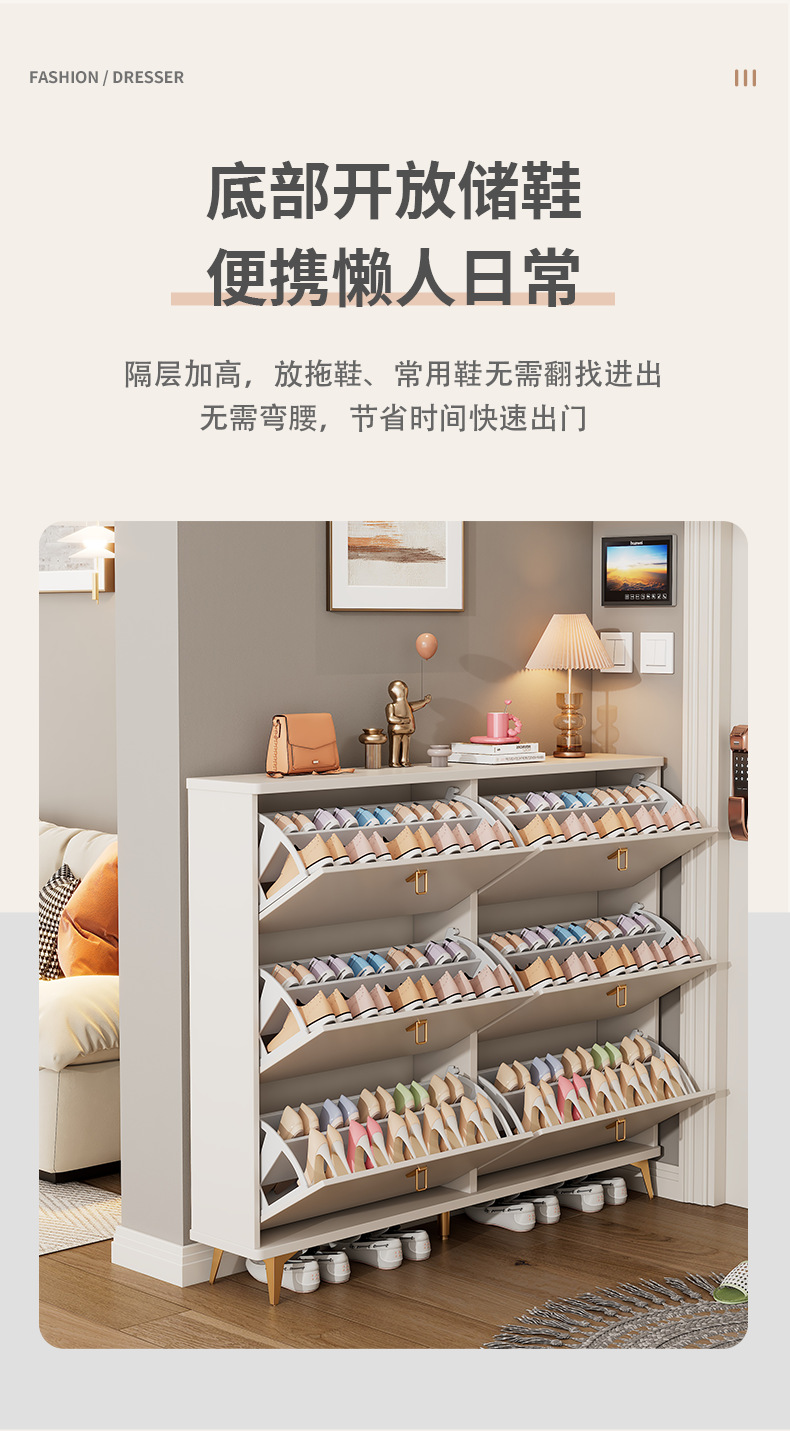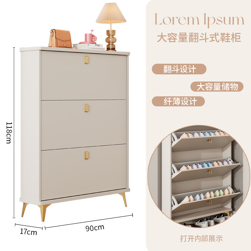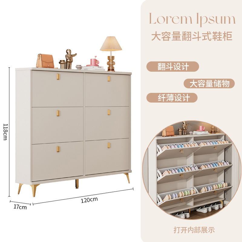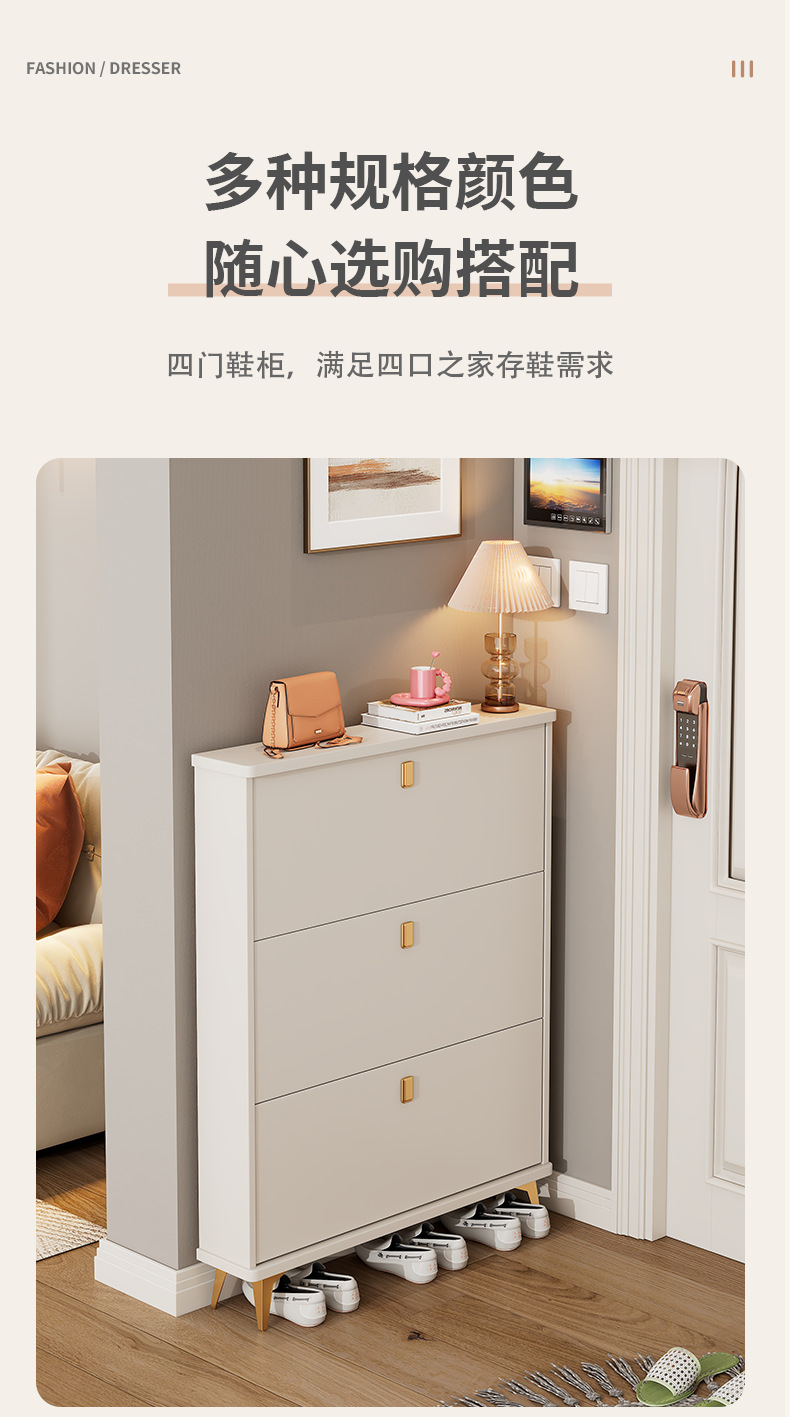 크림 스타일 초박형 신발 캐비닛 가정용 도어 입구 저장 입구 캐비닛 통합 벽 복도 발코니 입구 홀 신발 랙