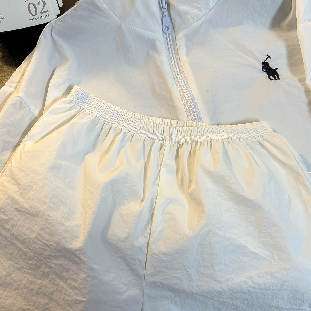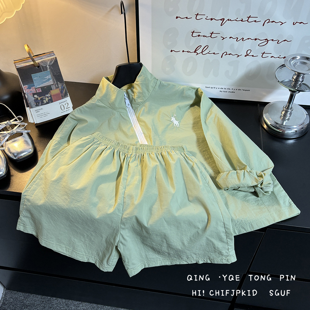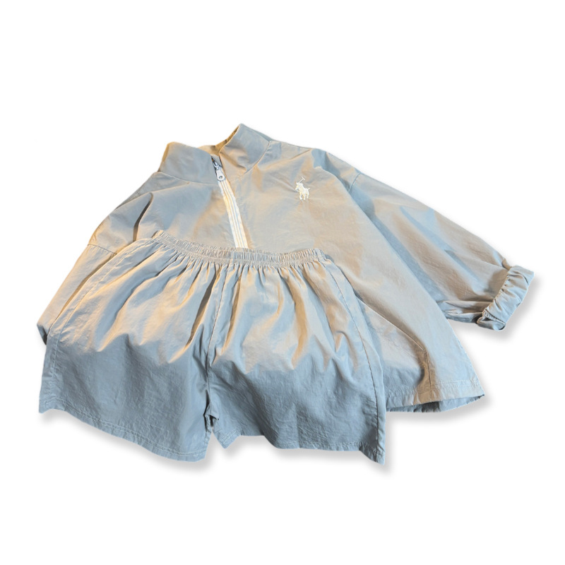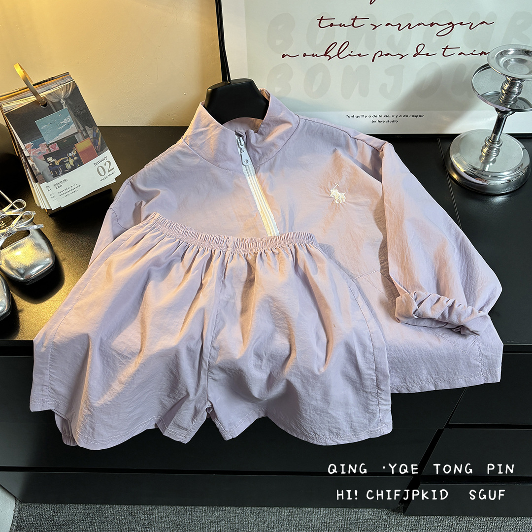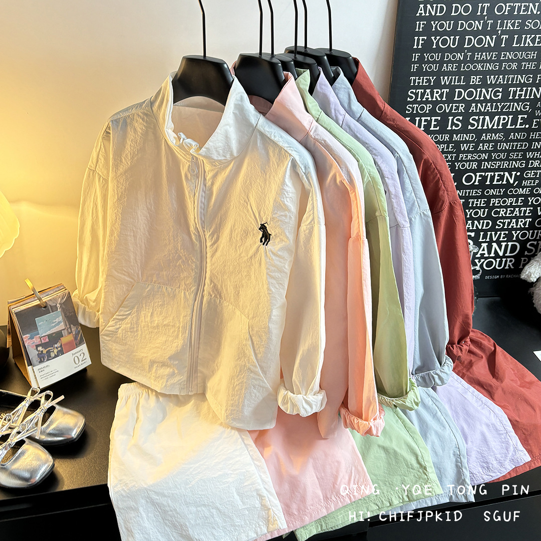 어린이 여름 선 스크린 의류 세트 소년 스포츠 탑 반바지 투피스 세트 아기 소녀의 얇은 지퍼 스킨 의류