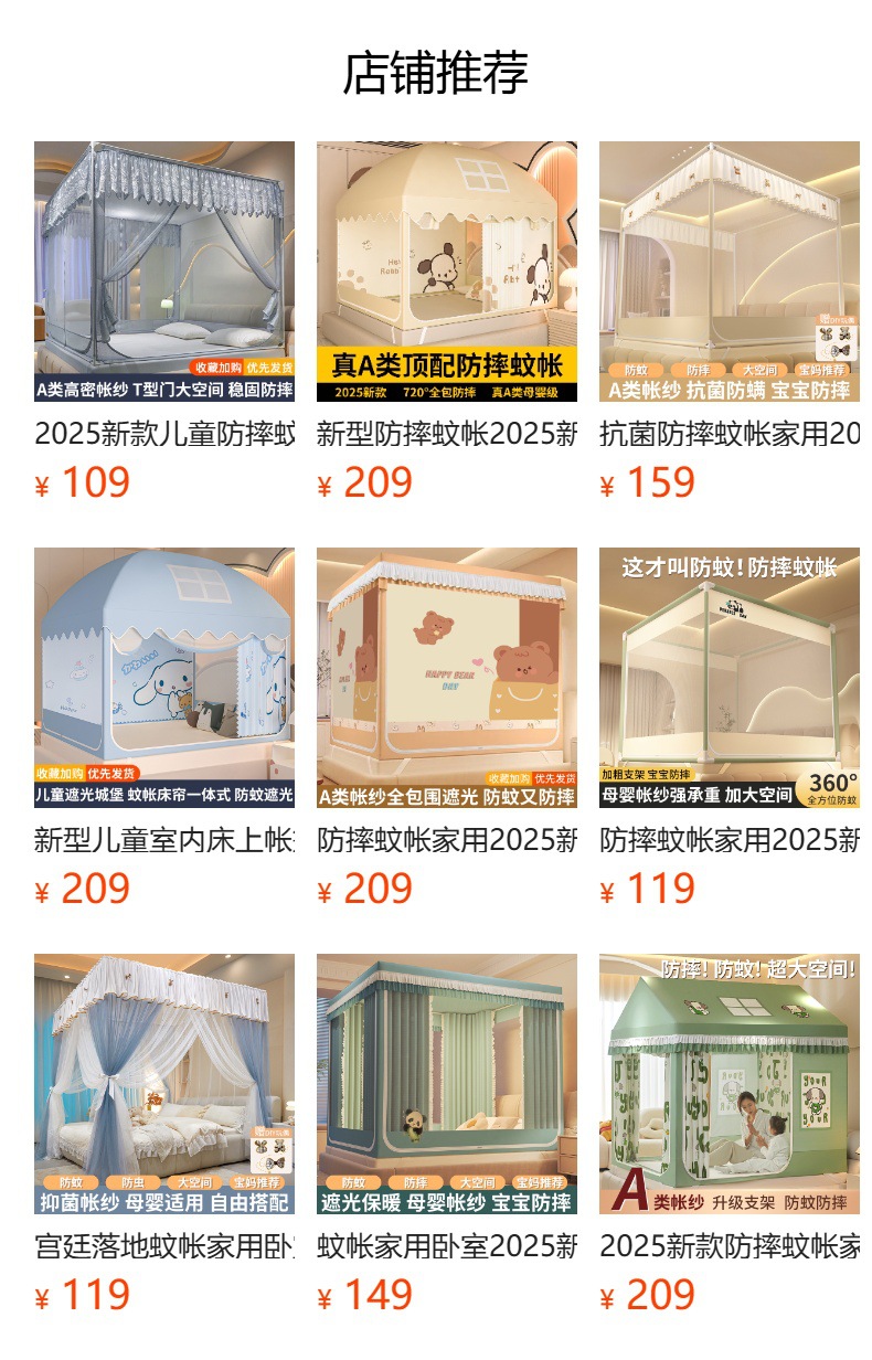 음영 안티 드롭 모기장 2025 새로운 스타일 침대 커튼 가구 3 도어 침실 아기의 안티 드롭 침대 텐트스토어 가기