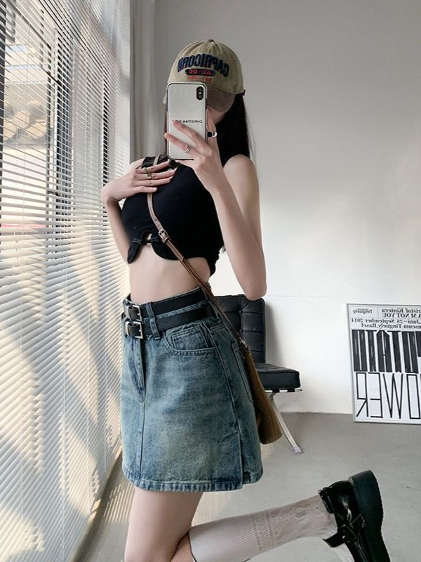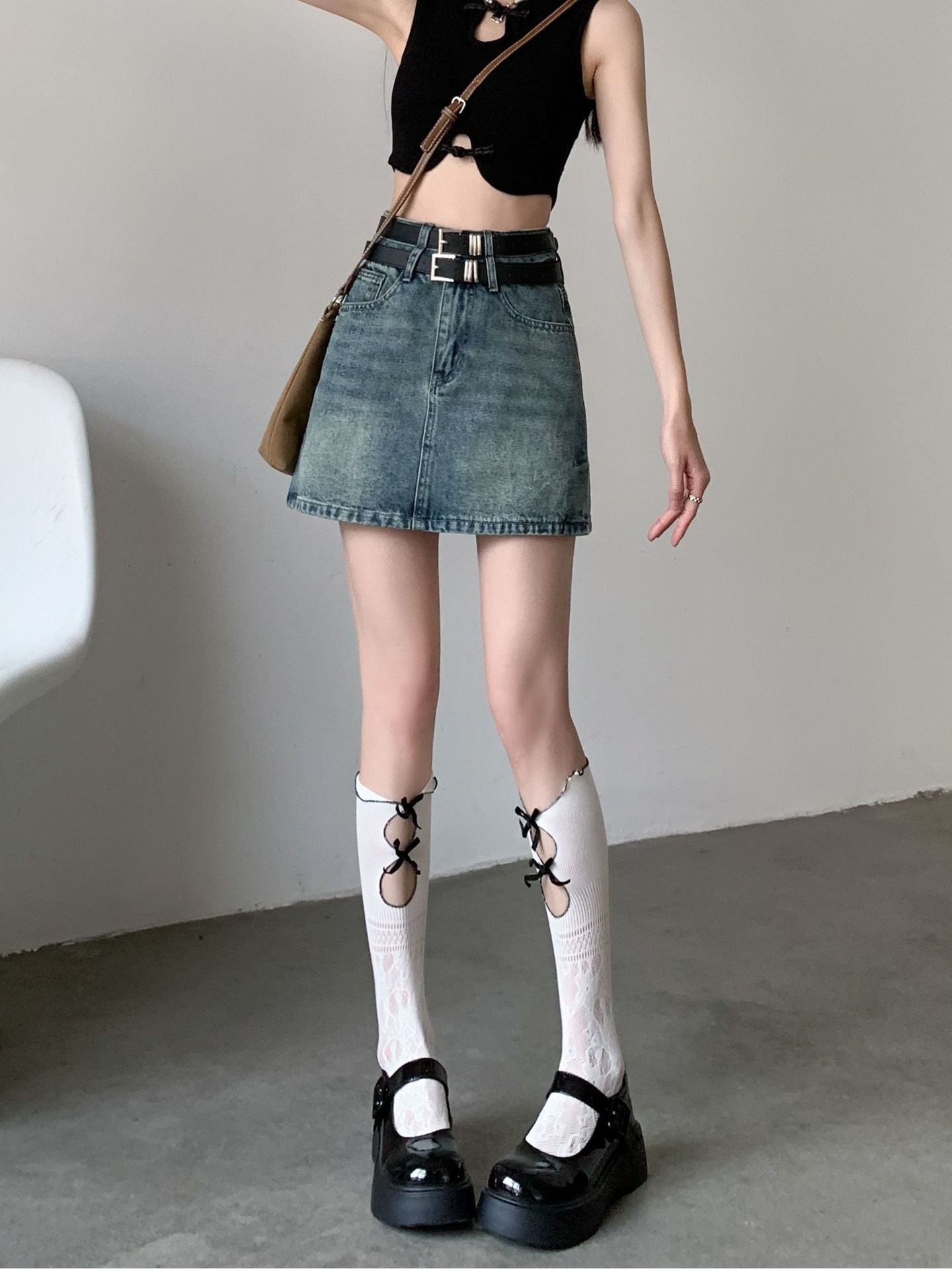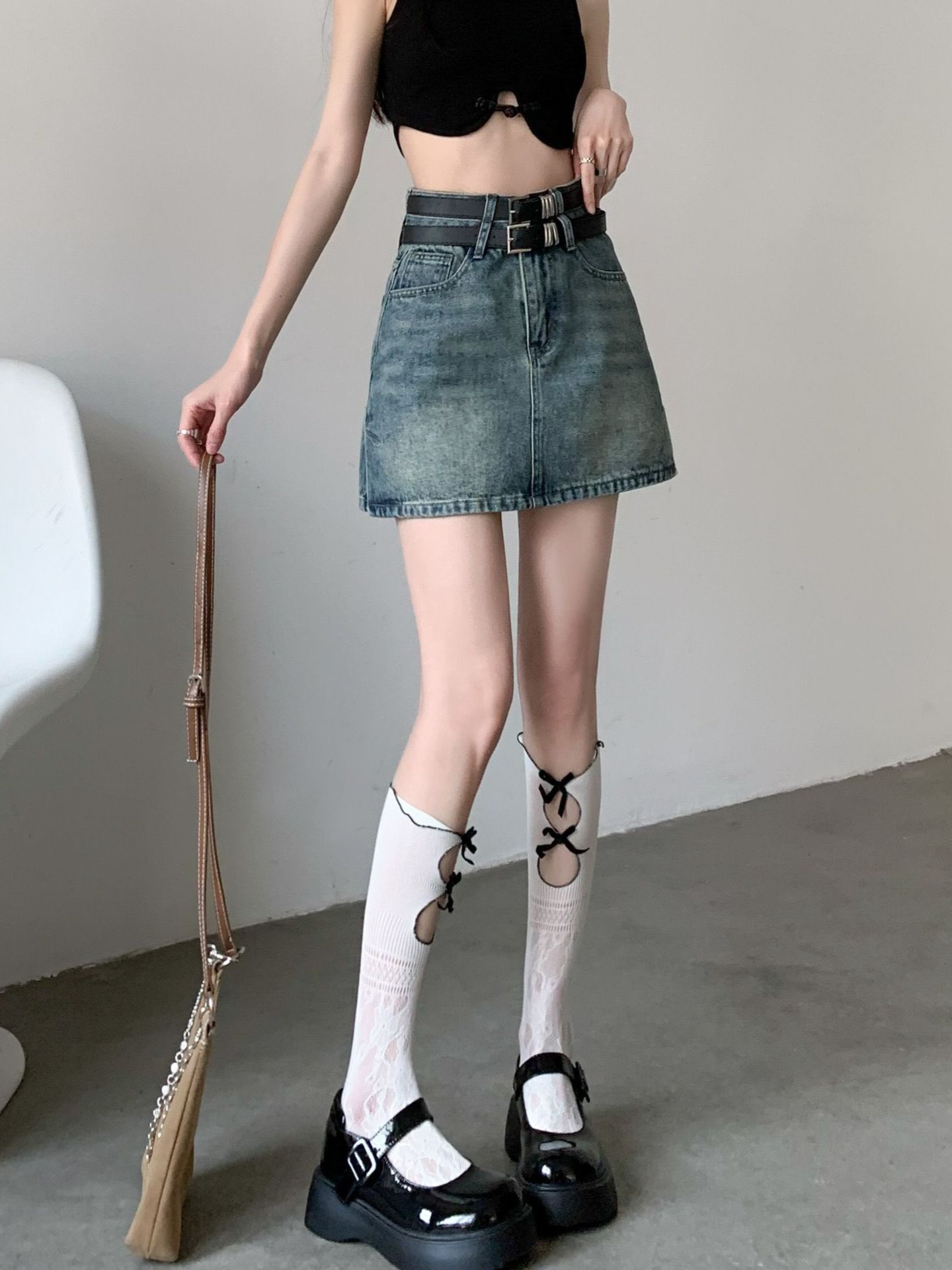 높은 허리 데님 스커트 여성 여름 새로운 슬림 핏 빈티지 스파이스 소녀 가방 엉덩이 슬리밍 A 라인 스커트 미끄럼 방지 스커트 바지