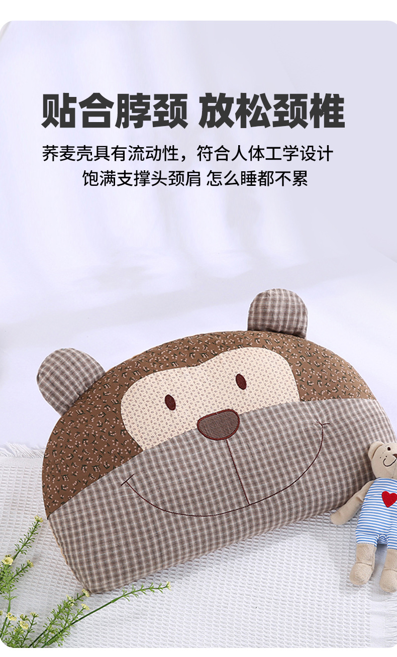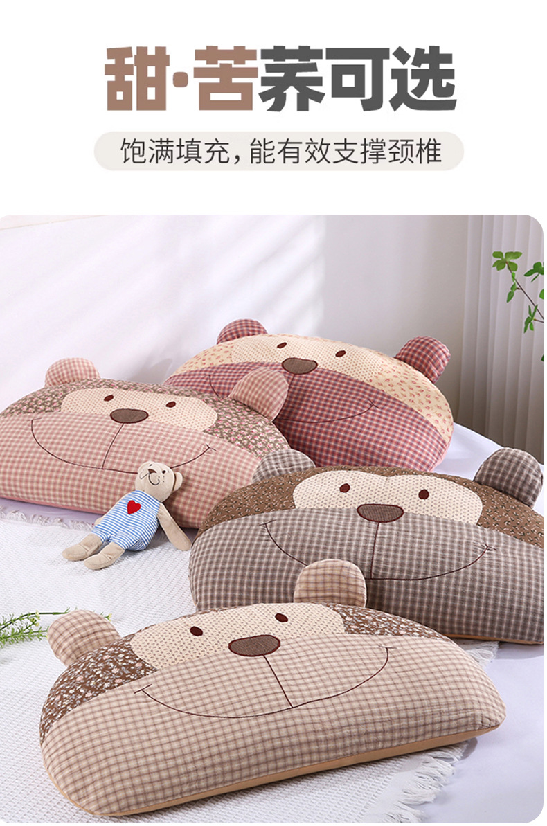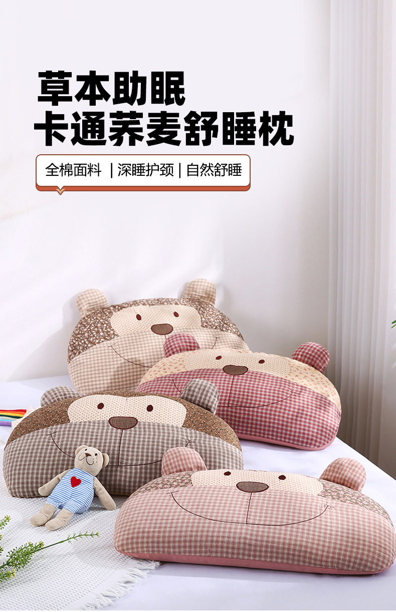 면 만화 귀여운 땀 흡수성 통기성 메밀 베개 면화 어린이 학생 성인 베개 이동식 및 빨 수 있는 도매