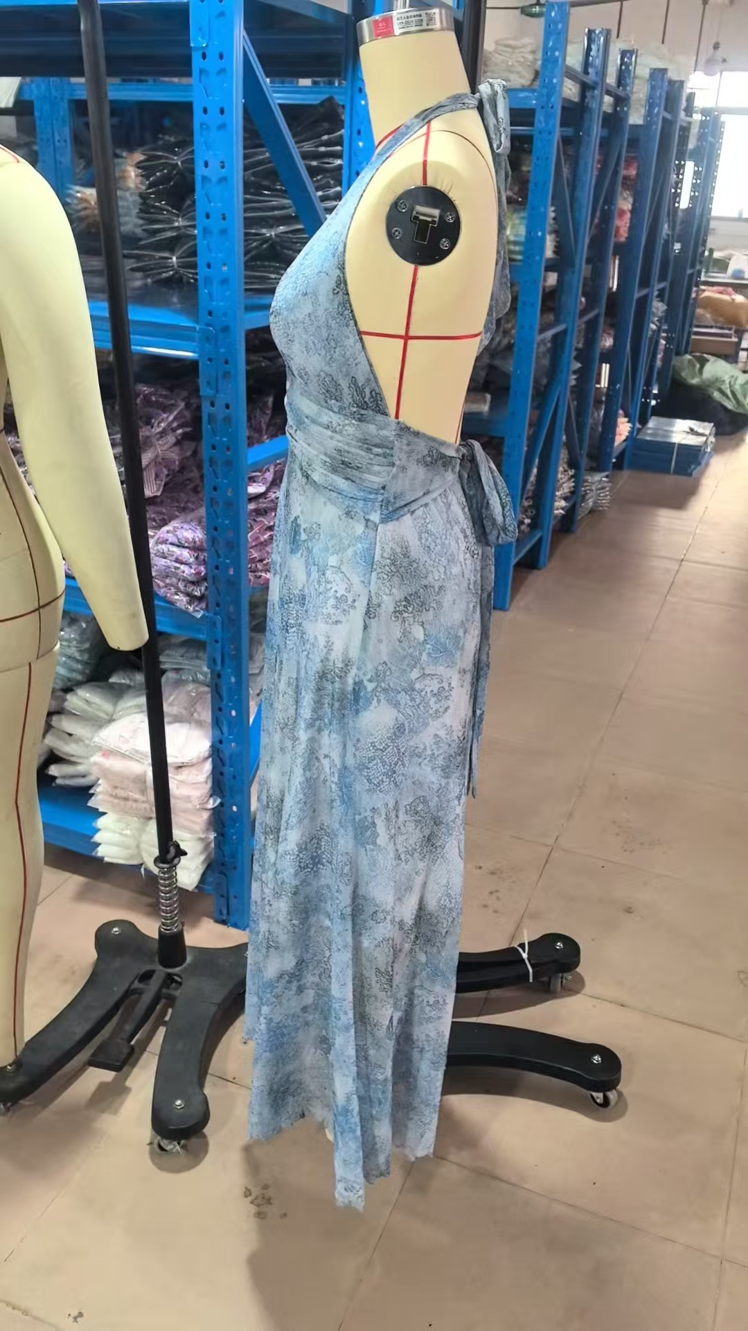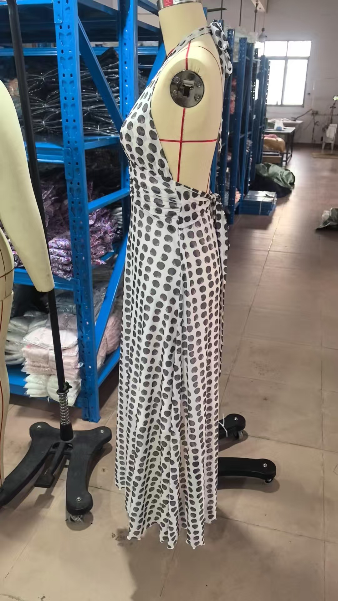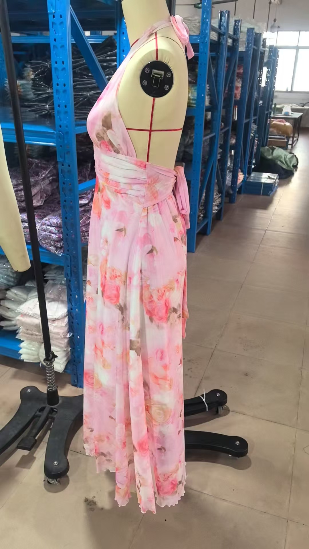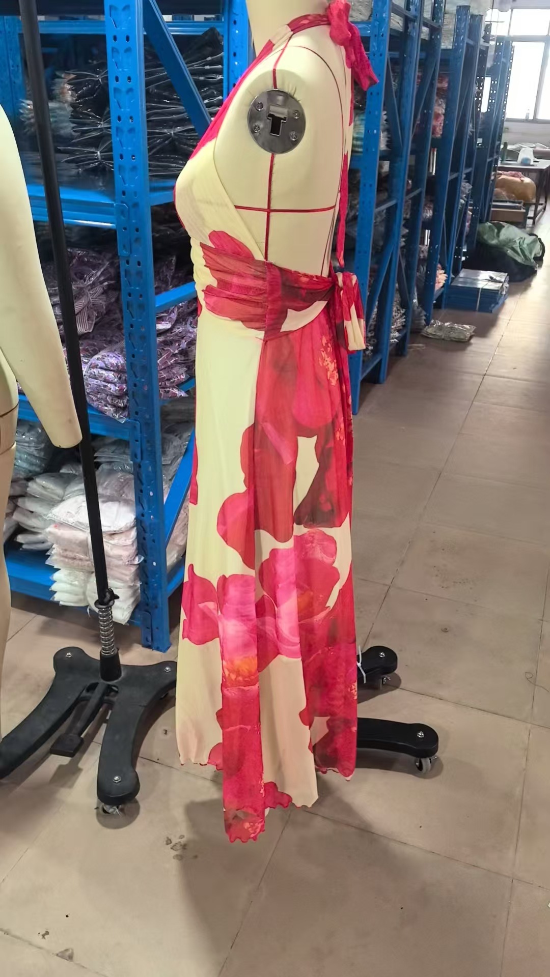 유럽과 미국의 Ins 스타일 국경 봄과 여름 새로운 패션 섹시한 원피스 백리스 슬림 핏 인쇄 된 목 교수형 원피스스토어 가기