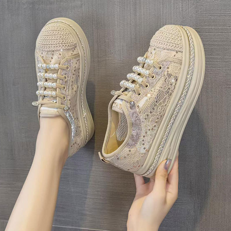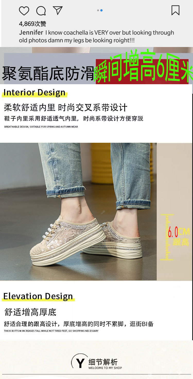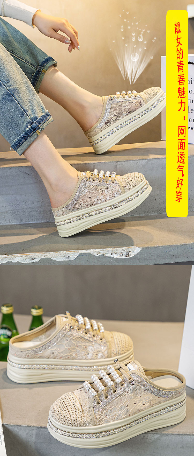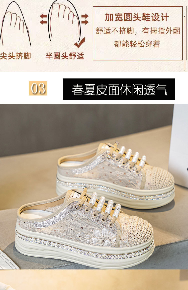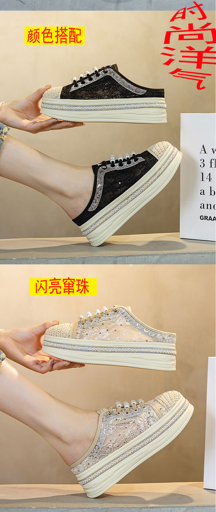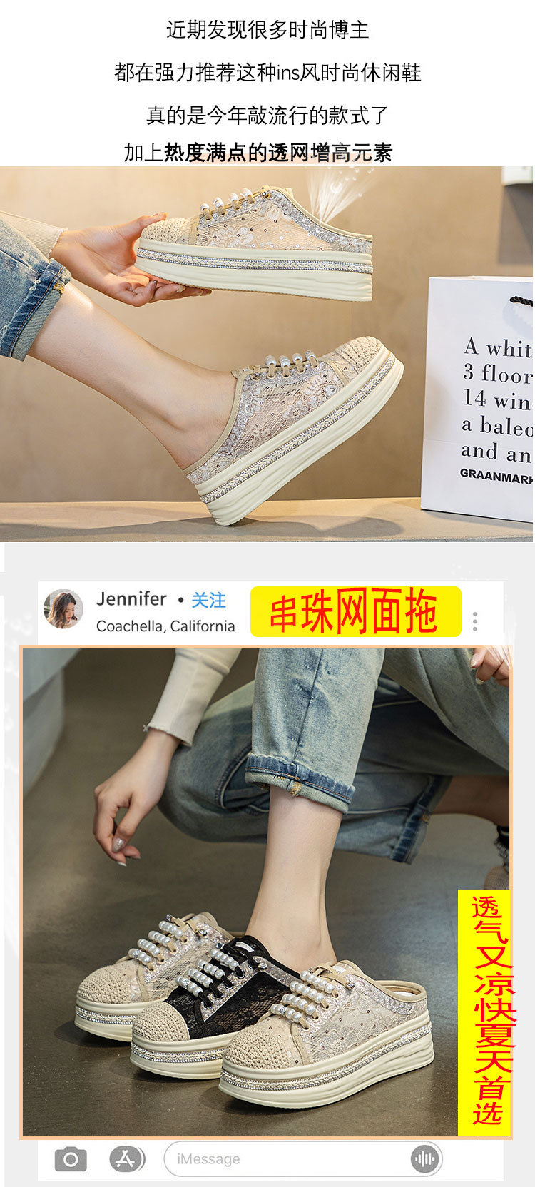2025년 신상 여름 스타일 라인스톤 두꺼운 밑창 레이스 메쉬 발가락 반슬리퍼 여성용 통기성 어부 신발스토어 가기
