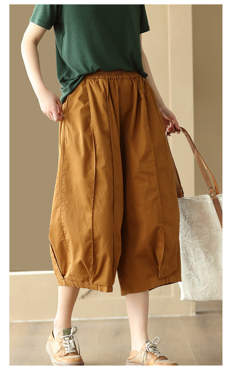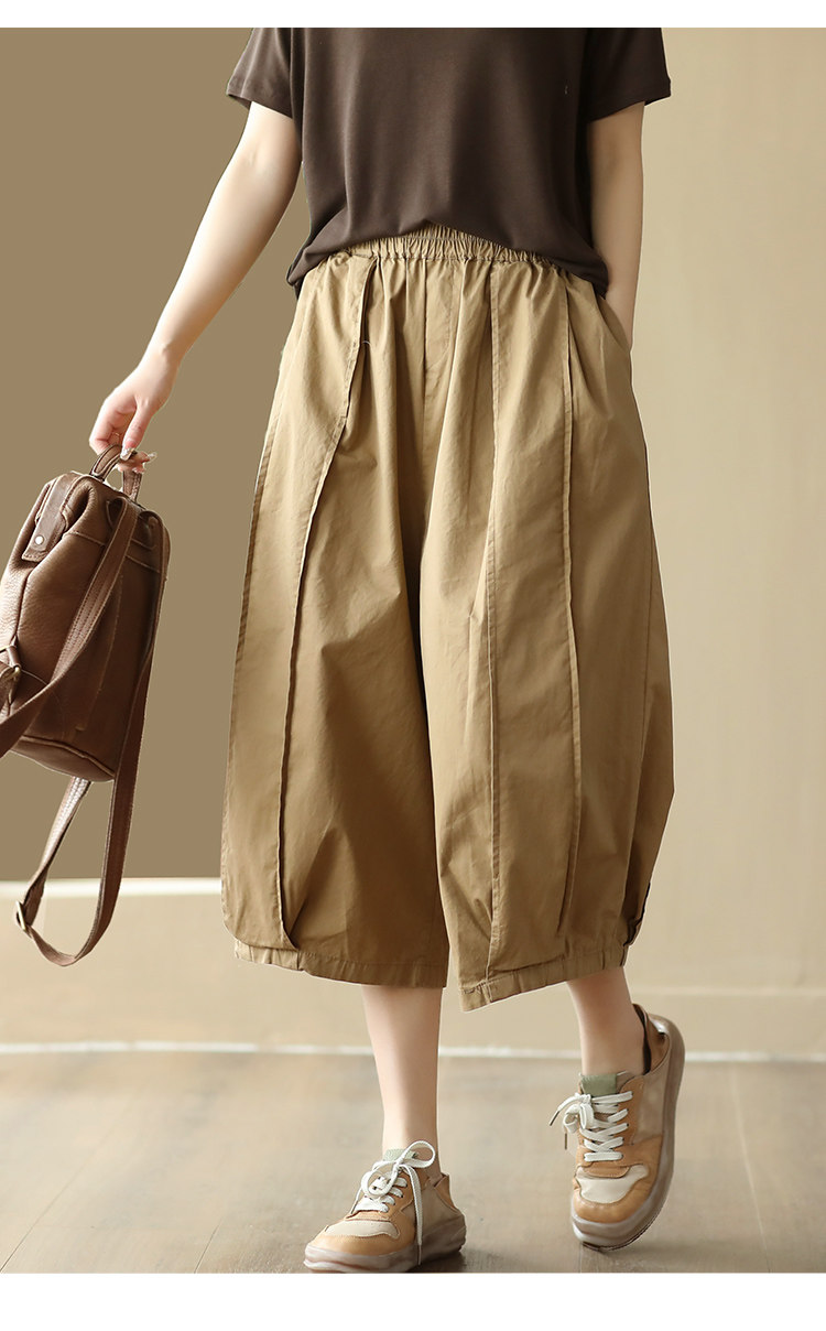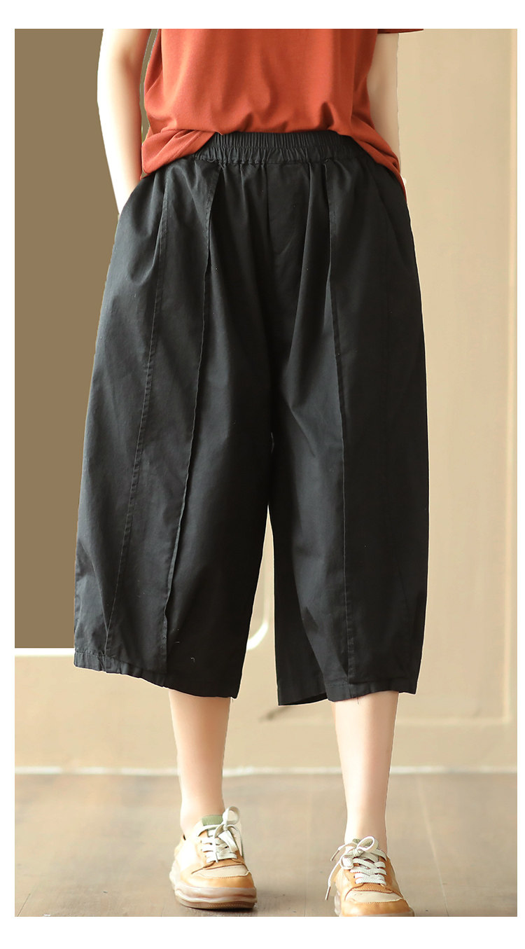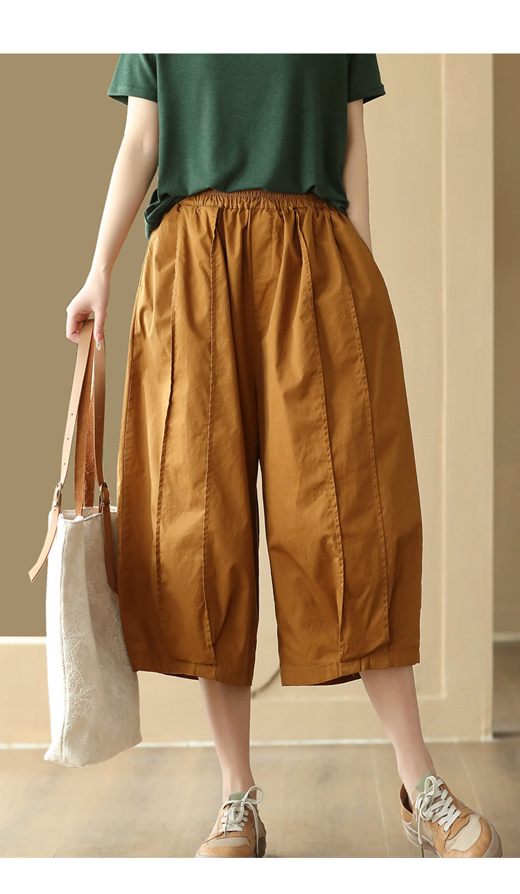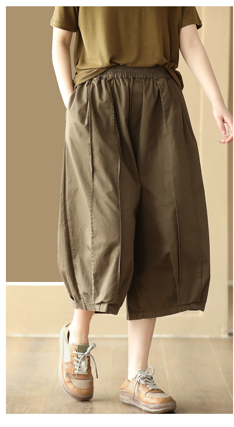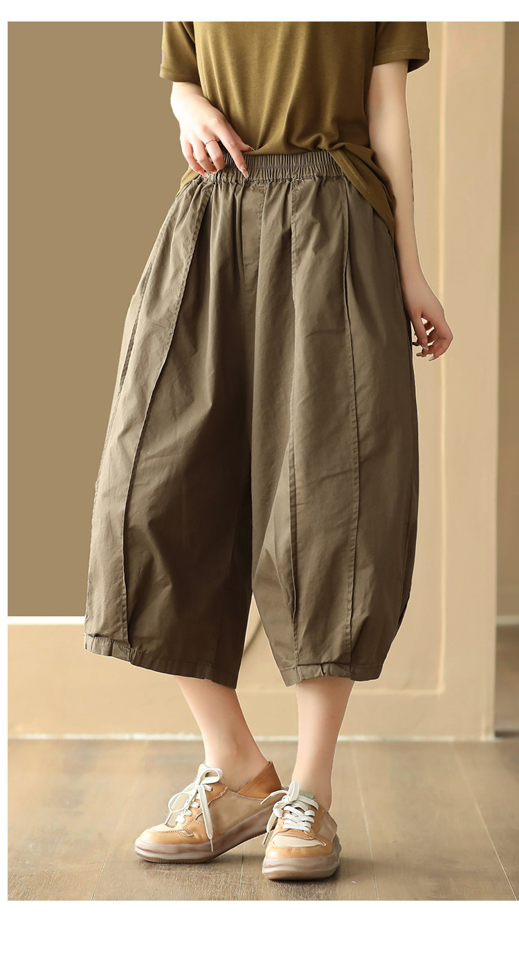 25 여름 빈티지 바느질 코튼 캐주얼 바지 여성용 느슨한 당근 바지 얇은 넓은 다리 블루머스 8588스토어 가기