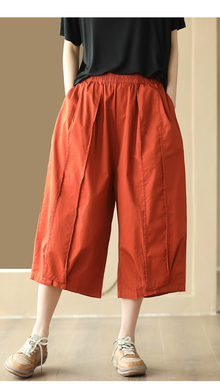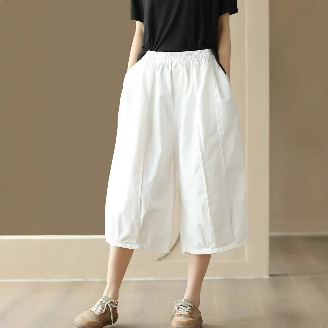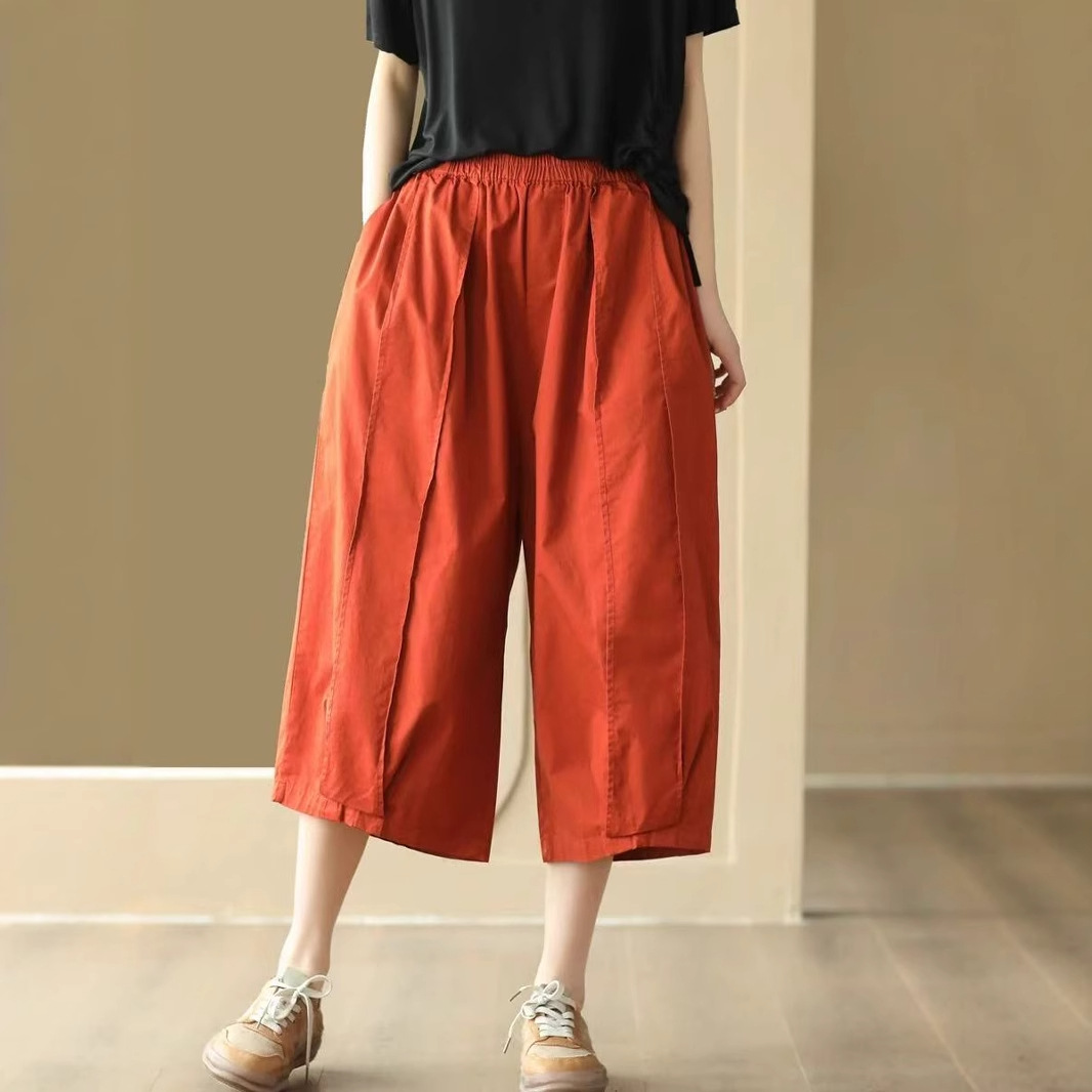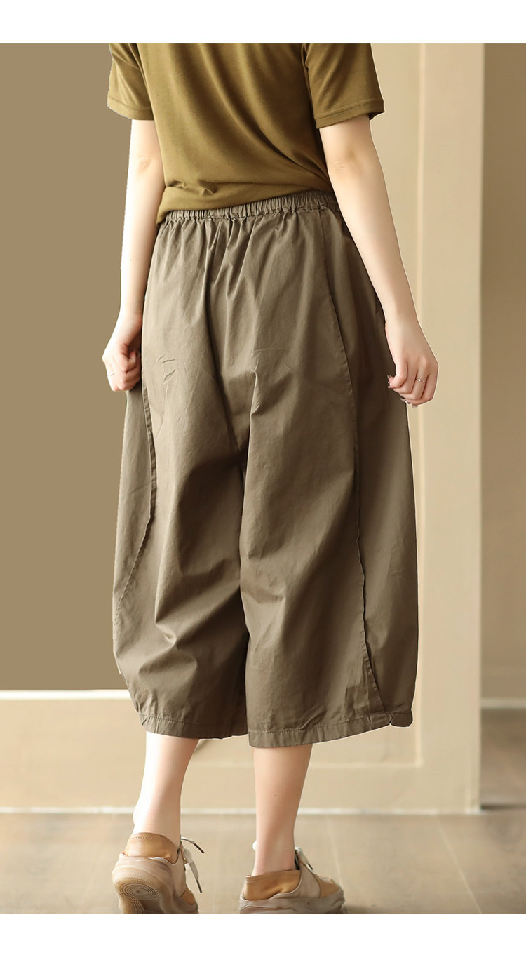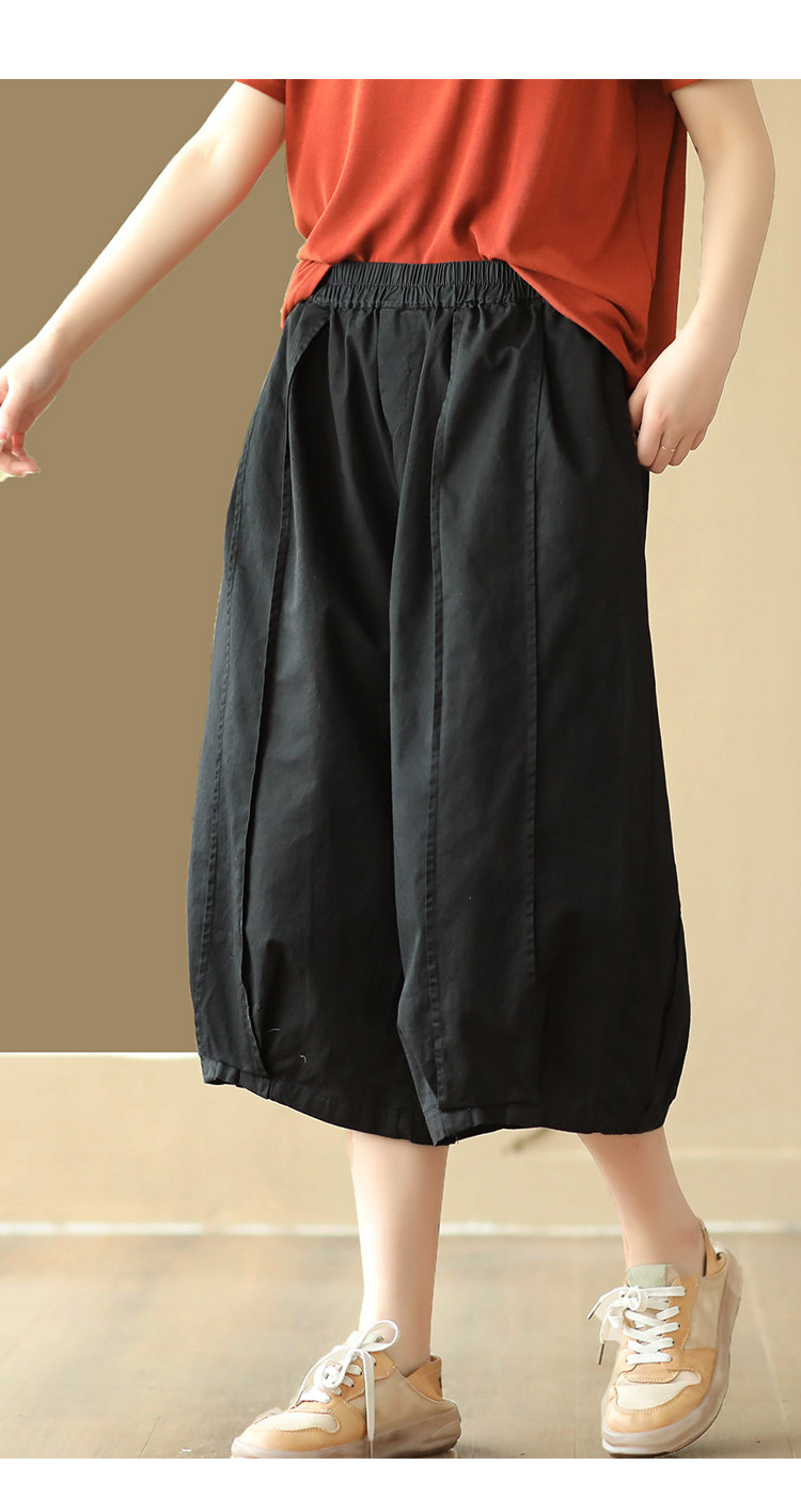 25 여름 빈티지 바느질 코튼 캐주얼 바지 여성용 느슨한 당근 바지 얇은 넓은 다리 블루머스 8588스토어 가기
