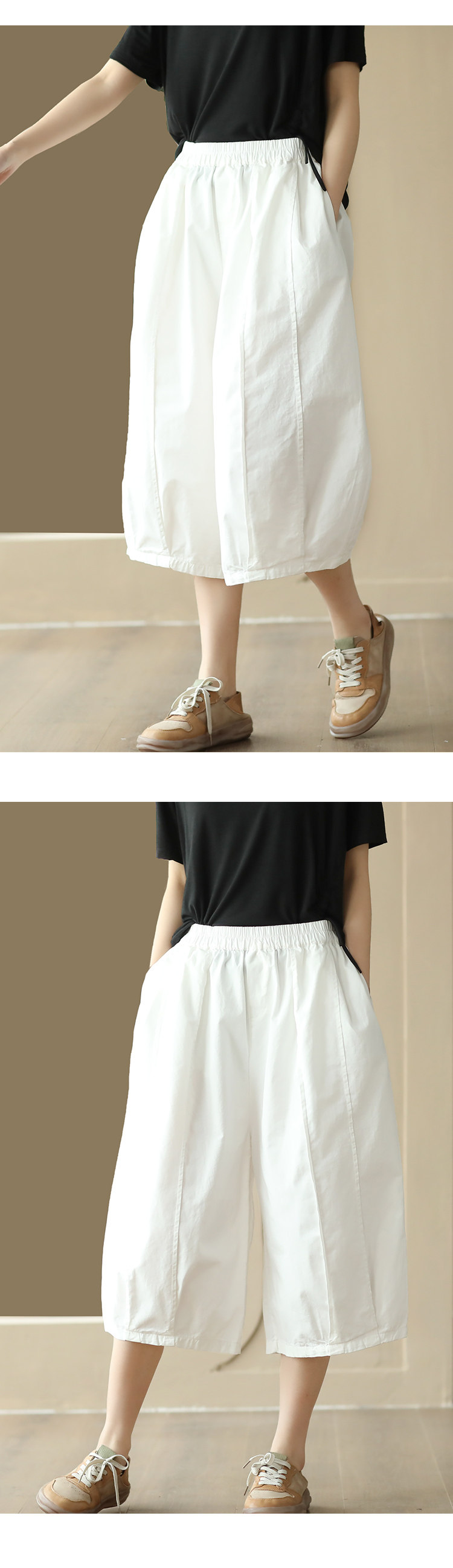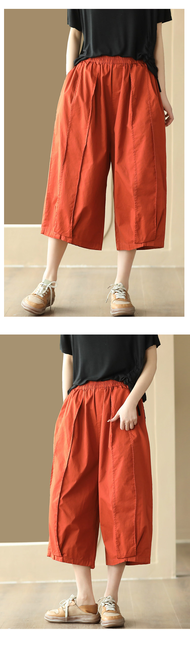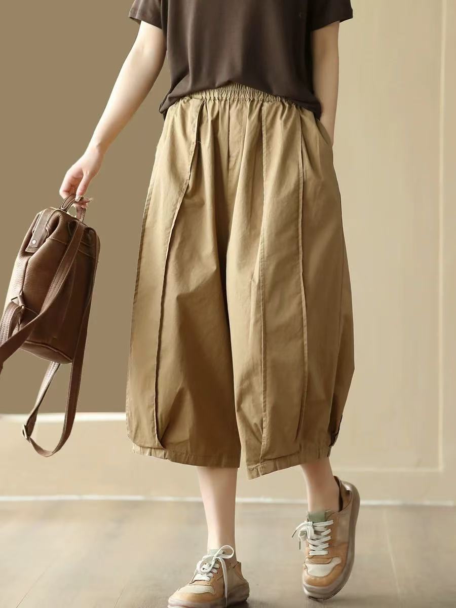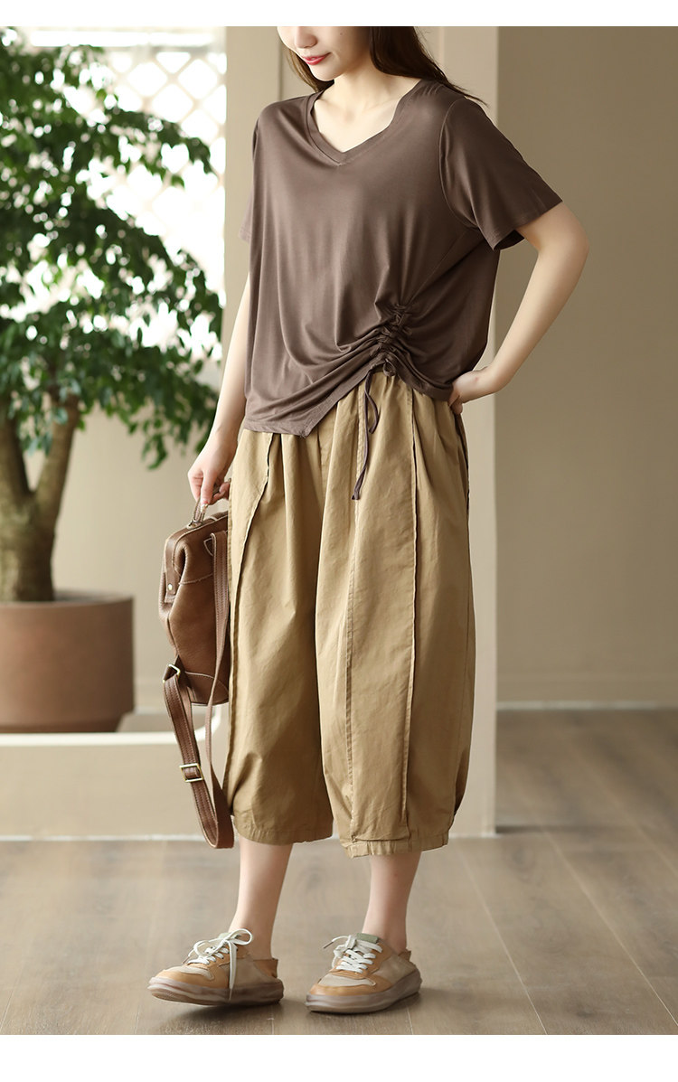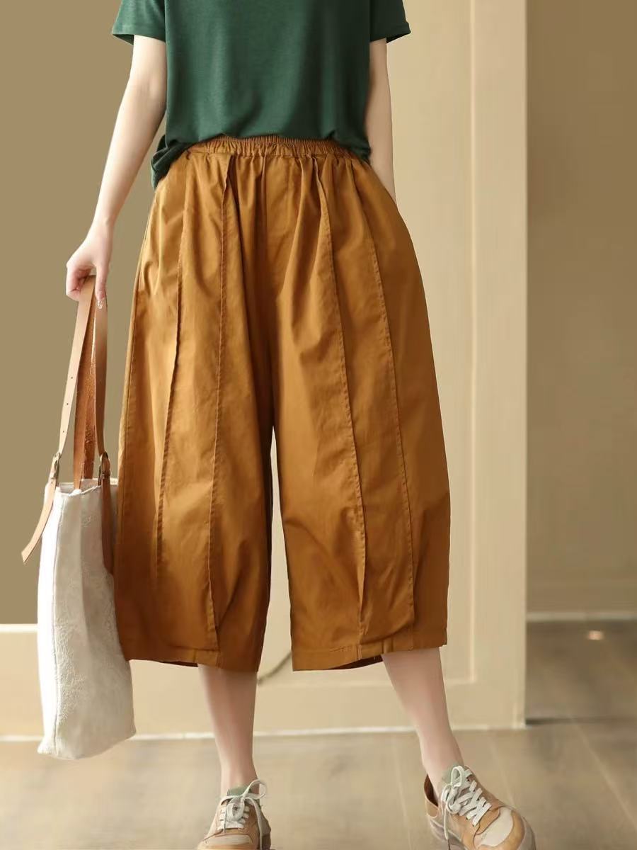 25 여름 빈티지 바느질 코튼 캐주얼 바지 여성용 느슨한 당근 바지 얇은 넓은 다리 블루머스 8588스토어 가기