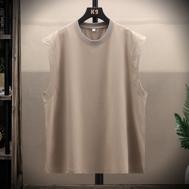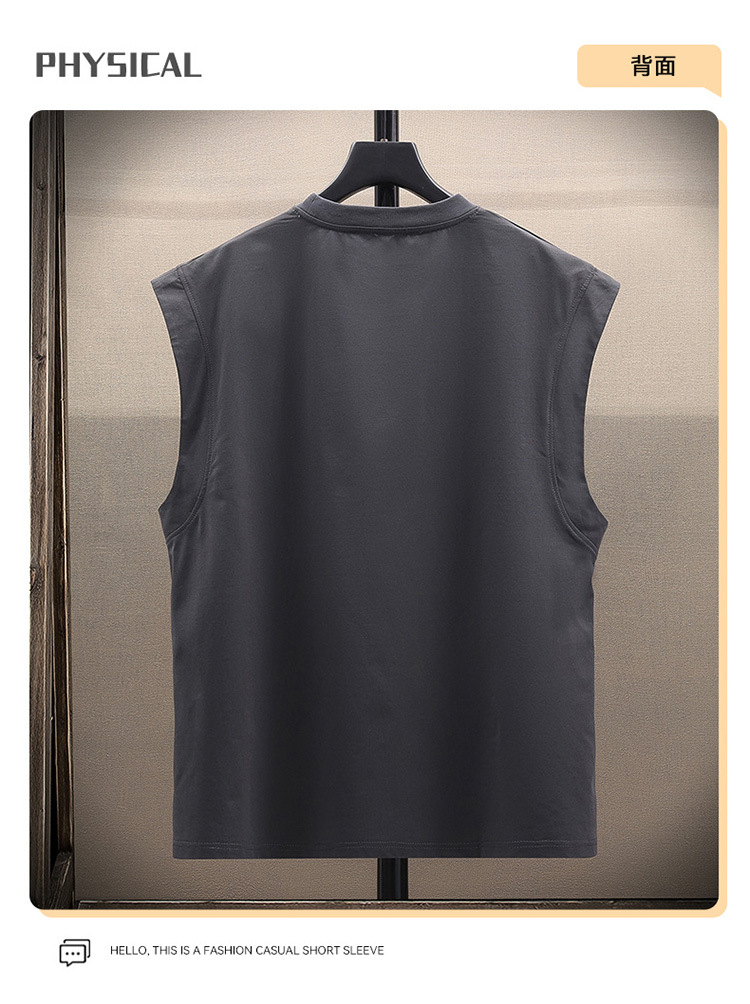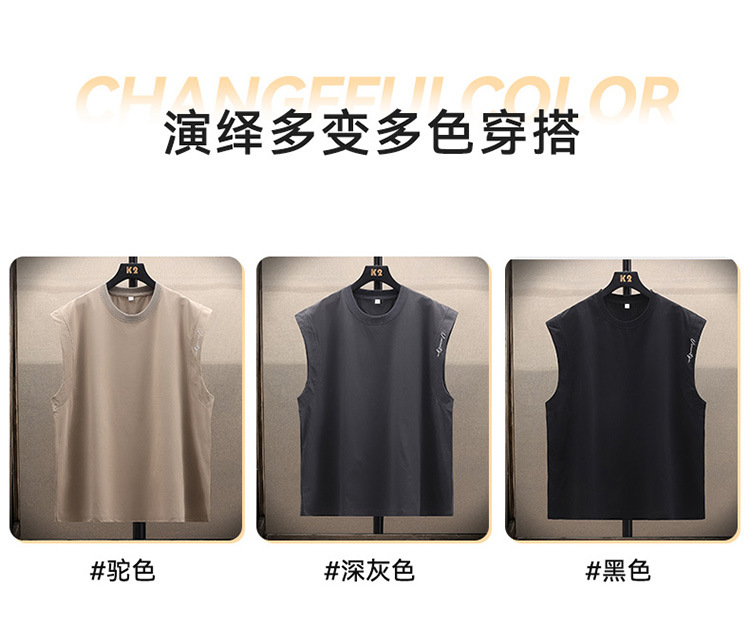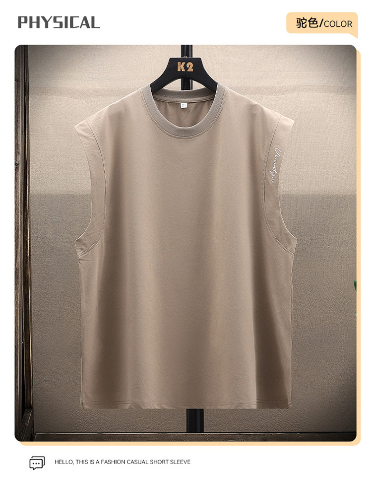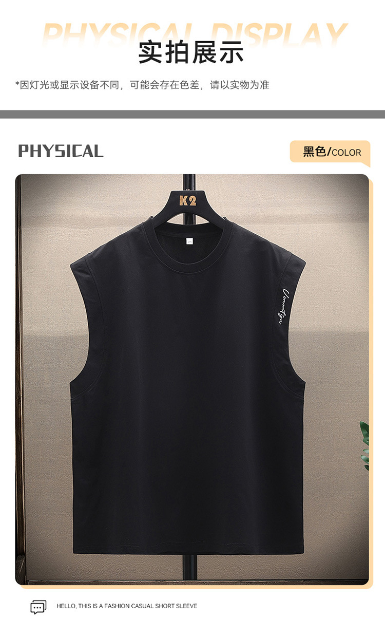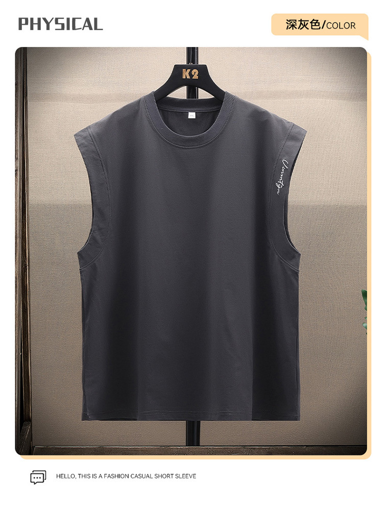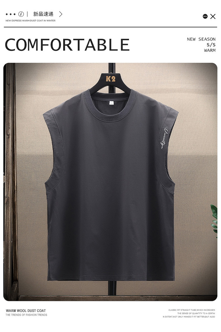 여름 청소년 트렌디 라운드 넥 민소매 조끼 남성용 양복 조끼 뚱뚱한 루즈 캐주얼 대형 티셔츠 자수 탑스토어 가기