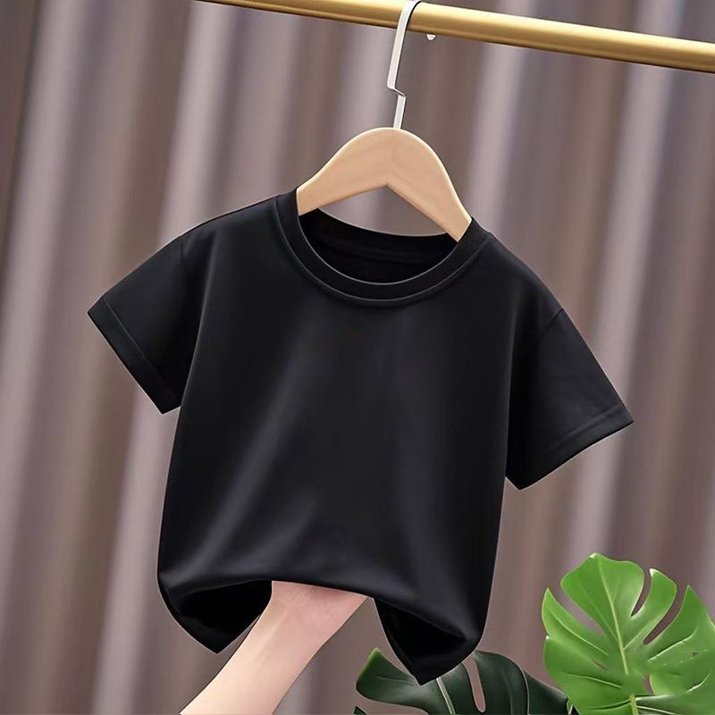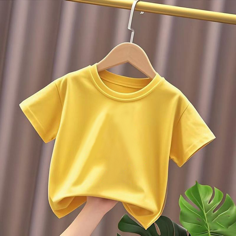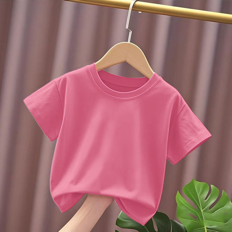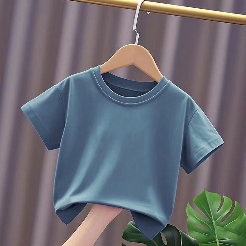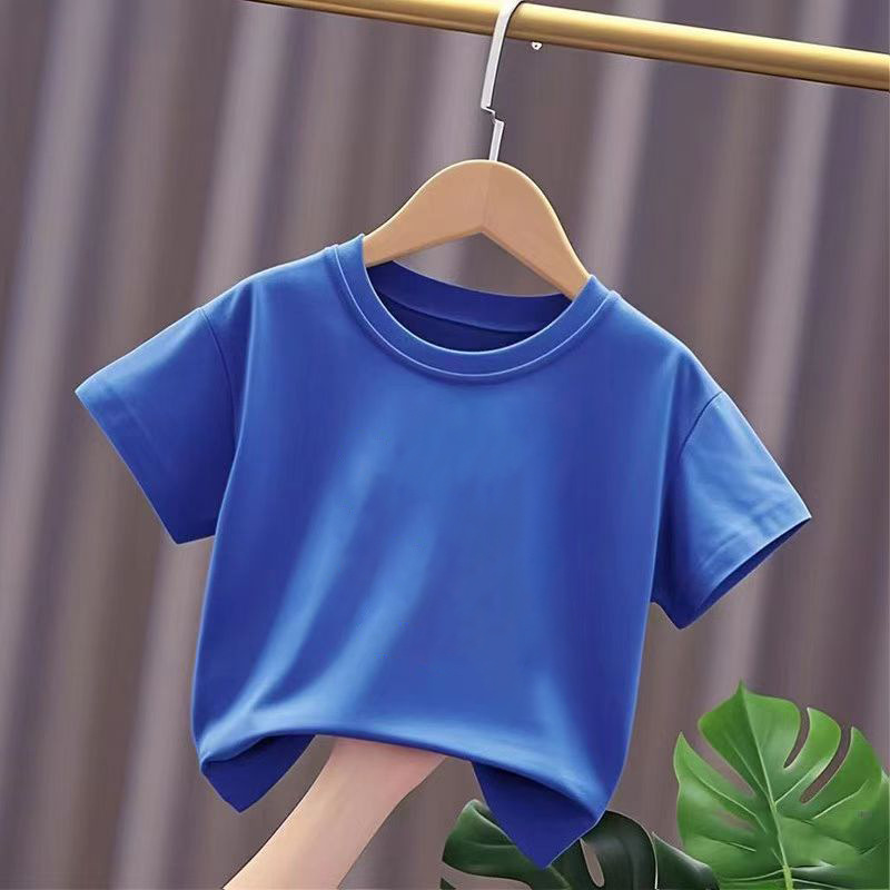 소년 소녀 여름 코튼 티셔츠 2025 새로운 어린이 솔리드 컬러 라운드 넥 올 매치 쇼트 슬리브 탑베이스 아동복스토어 가기