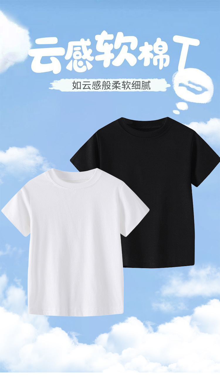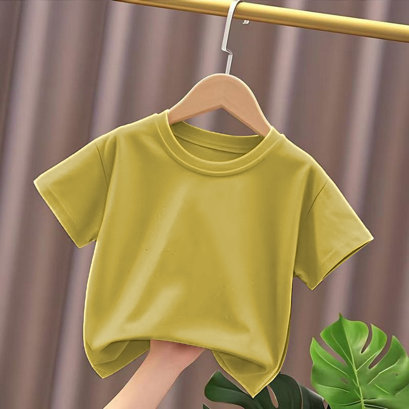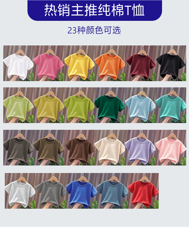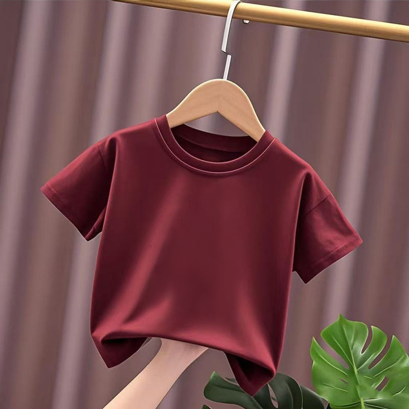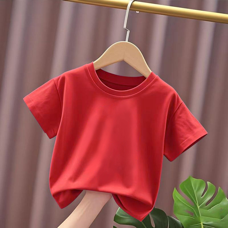 소년 소녀 여름 코튼 티셔츠 2025 새로운 어린이 솔리드 컬러 라운드 넥 올 매치 쇼트 슬리브 탑베이스 아동복스토어 가기