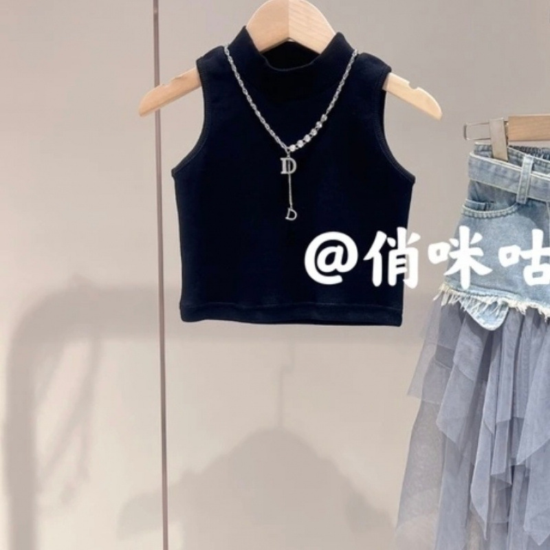 여자 여름 새로운 인터넷 연예인 정장 2025 한국어 버전 아기 소녀 조끼 탑 메쉬 스플 라이스 데님 스커트 정장