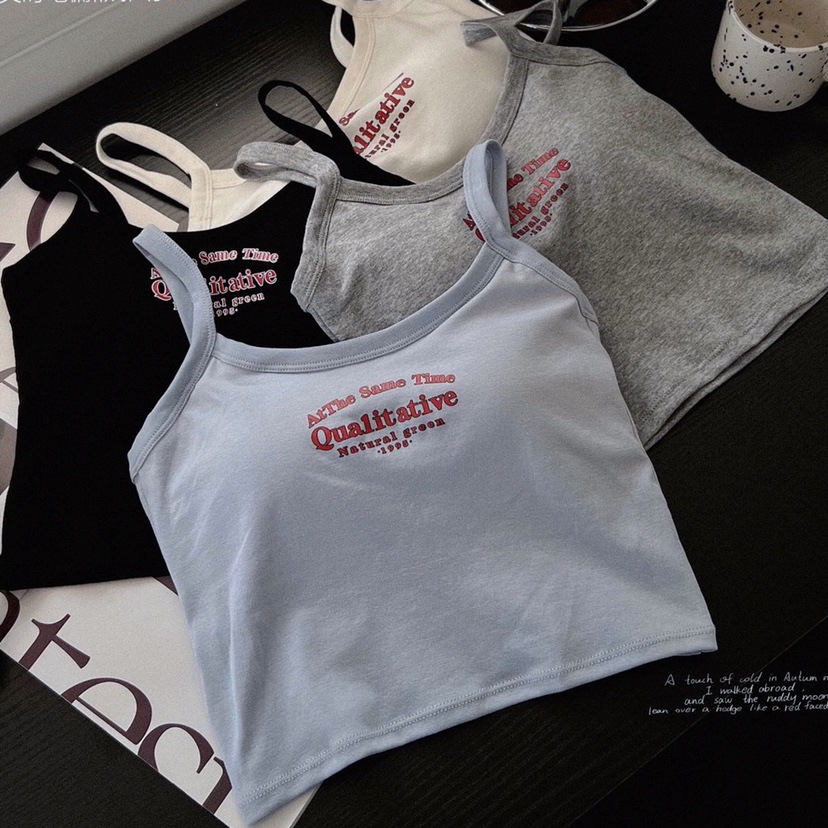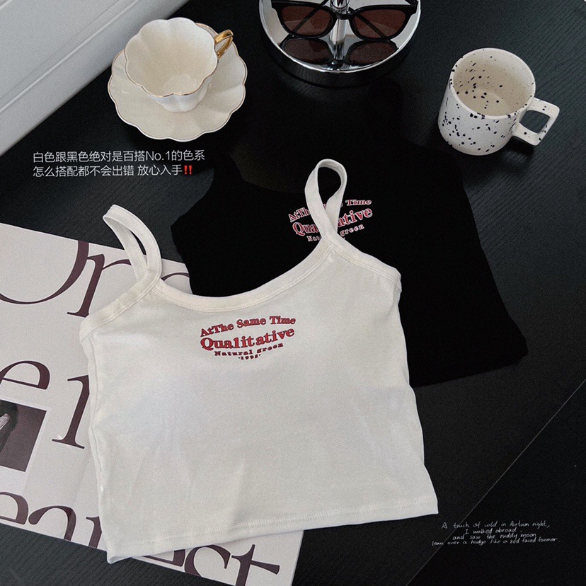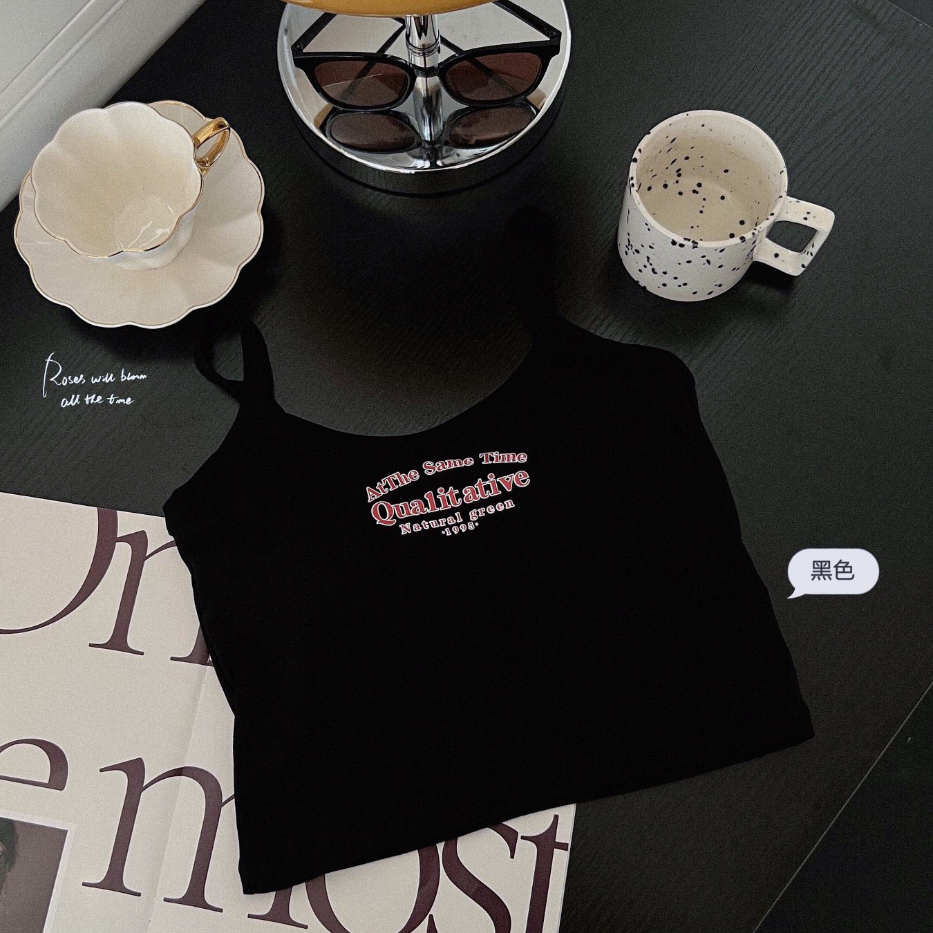 일본 순수한 욕망 편지 인쇄 순수한 면 슬링 아름다운 다시 조끼 고정 컵 가슴 패드 내베이스 스트랩리스 탑