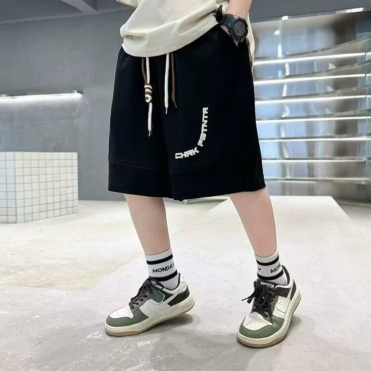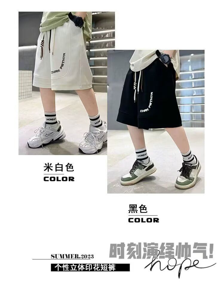 남학생 바지 여름 새로운 어린이 캐주얼 느슨한 캐주얼 스포츠 올매치 인쇄 바지 중간 크기 짧은 바지