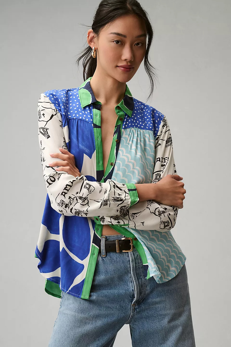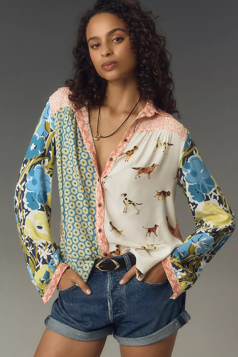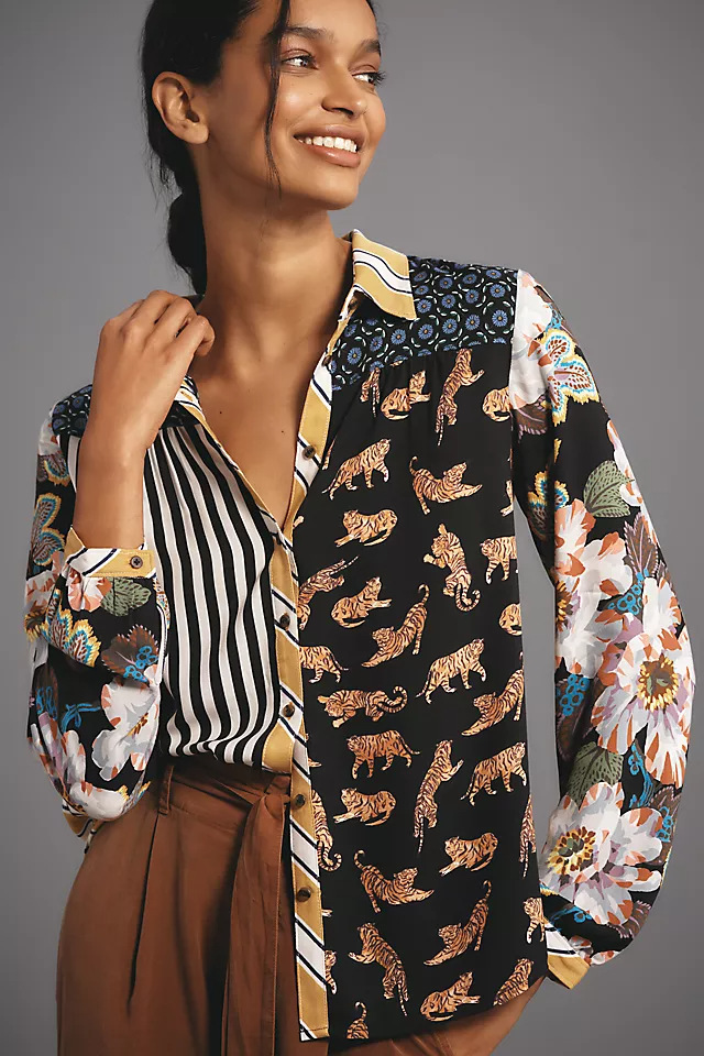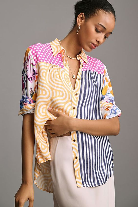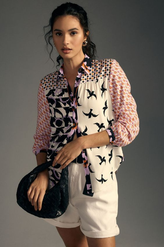 2025 Amazon AliExpress temu 새로운 봄과 여름 인쇄 옷깃 긴 소매 셔츠 여성의 패션 기질 신선한