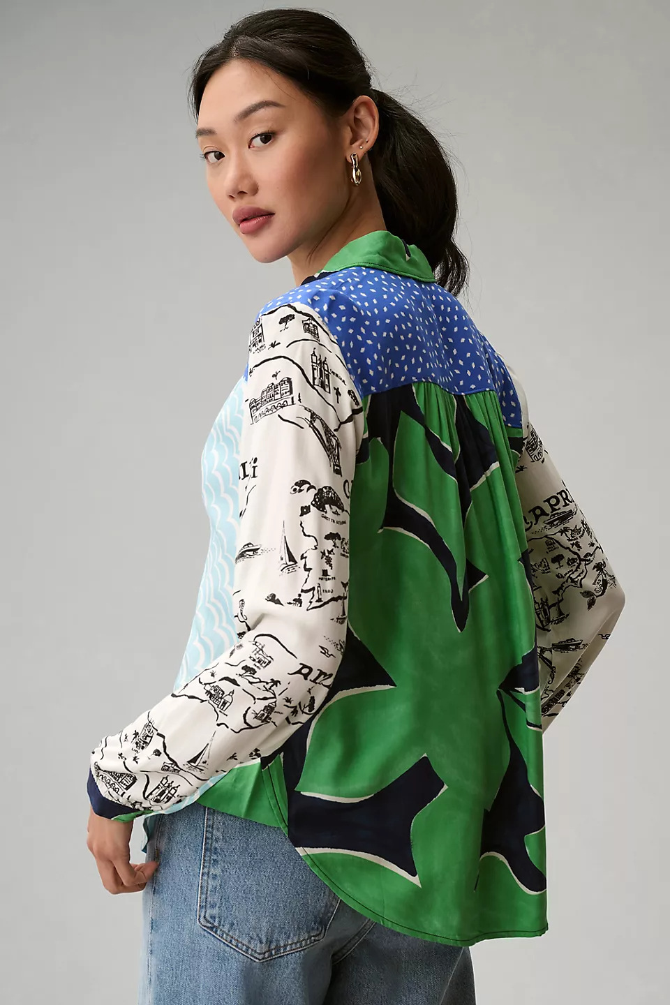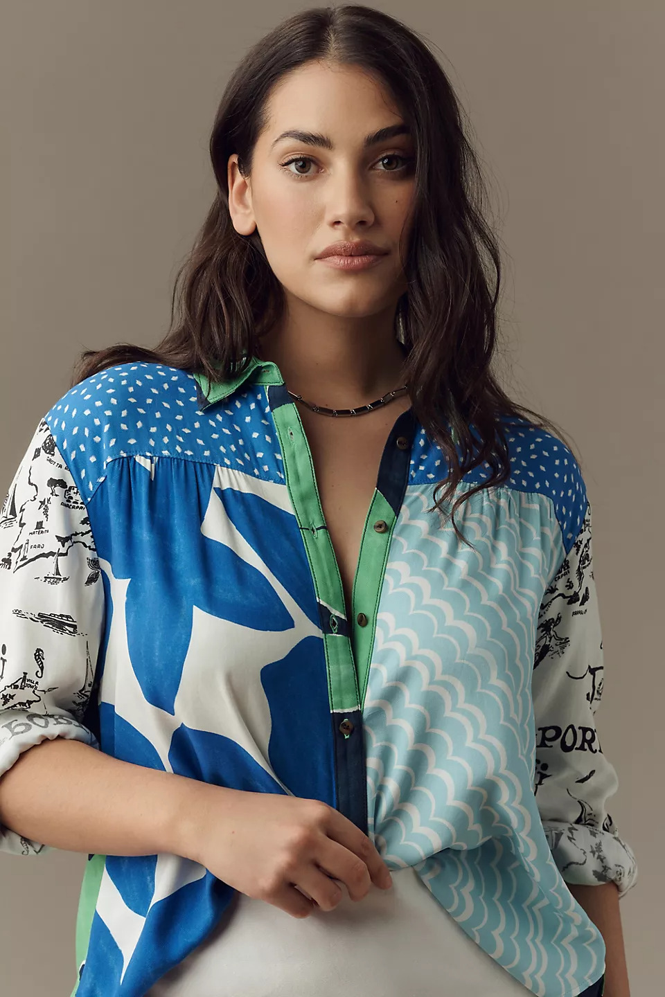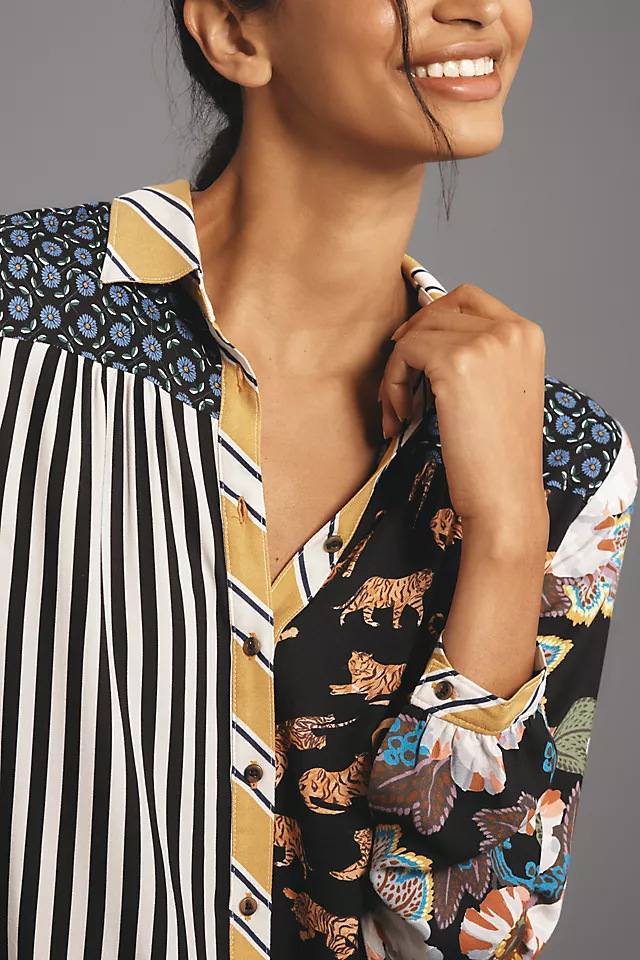 2025 Amazon AliExpress temu 새로운 봄과 여름 인쇄 옷깃 긴 소매 셔츠 여성의 패션 기질 신선한