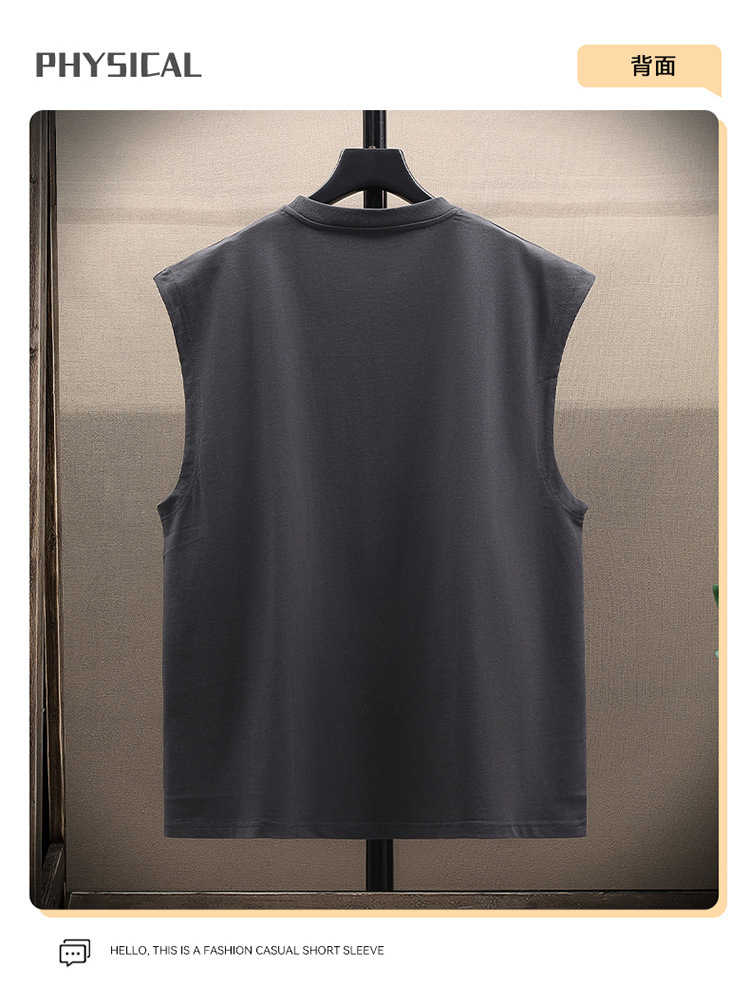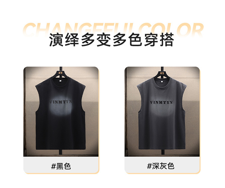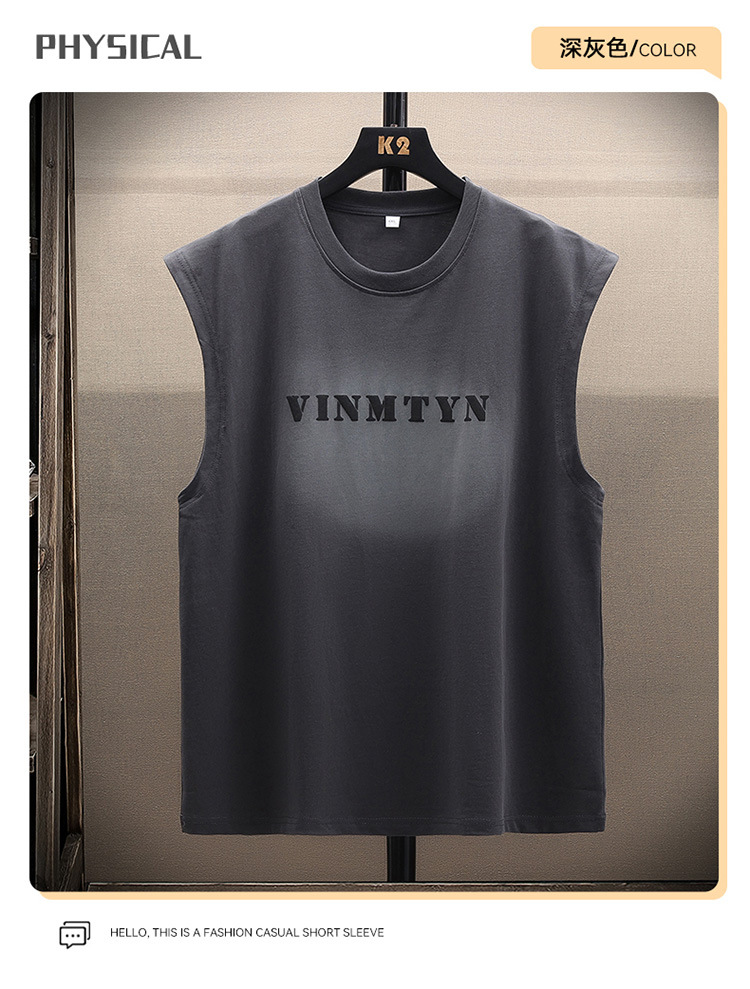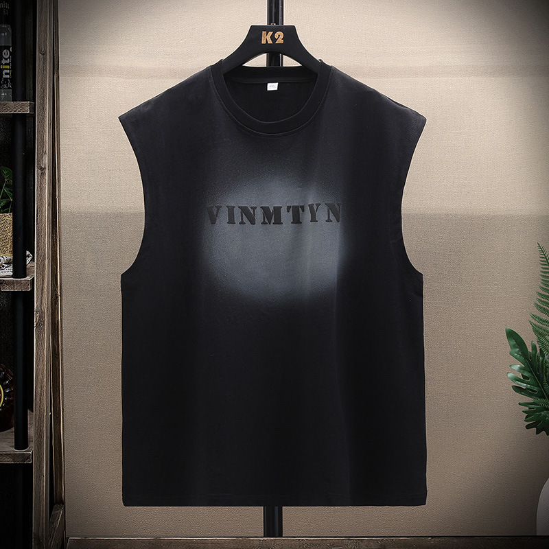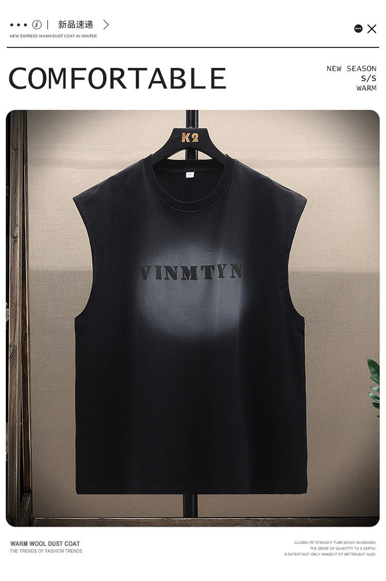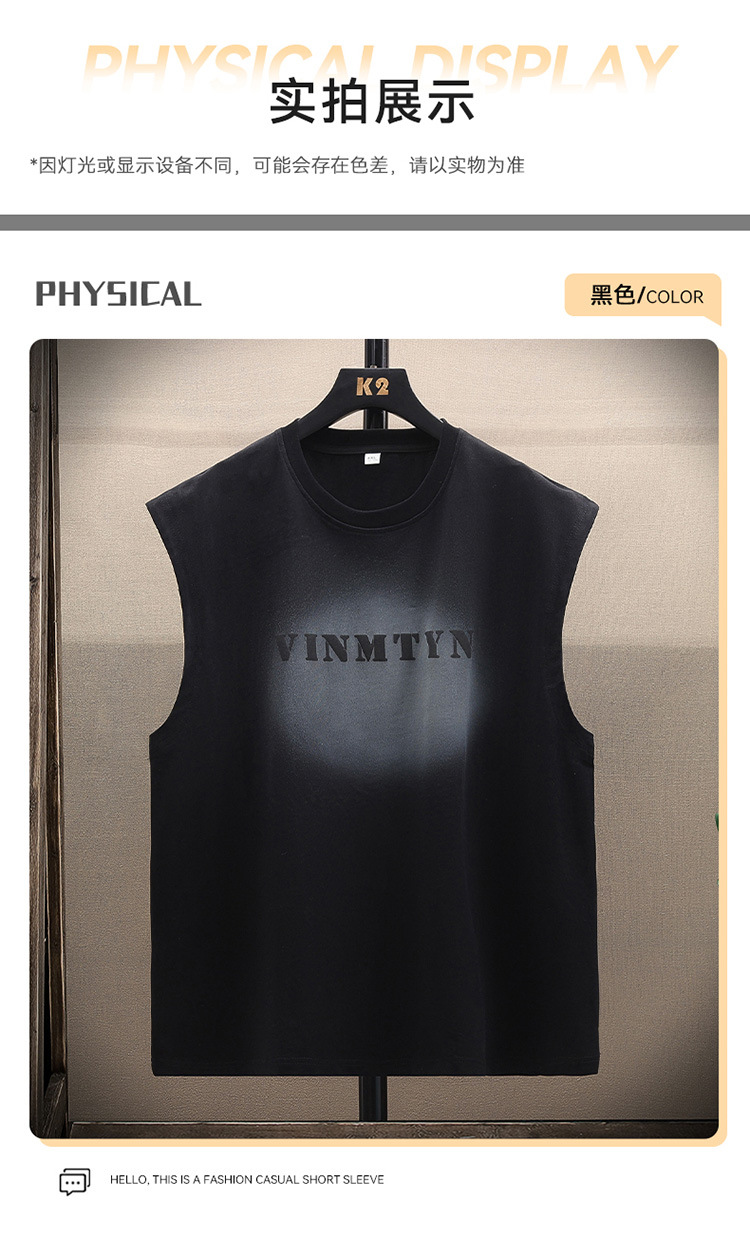 여름 그라데이션 라운드 넥 민소매 조끼 남성용 양복 조끼 뚱뚱한 남자 루즈 캐주얼 대형 레터 프린트 티셔츠 탑 트렌디스토어 가기