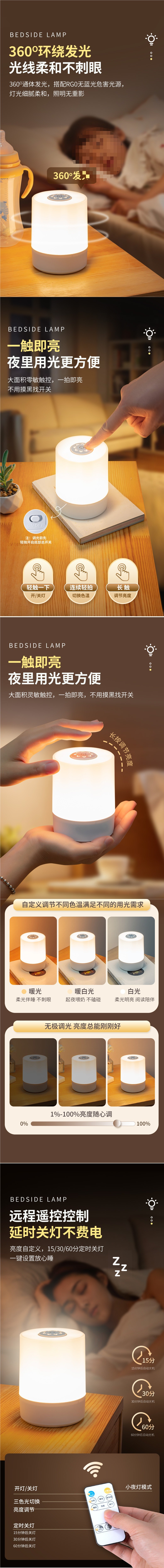 DMLED 충전식 터치 패드 램프 야간 수유 원격 제어 아기 침대 옆 램프 기숙사 분위기 소형 도매