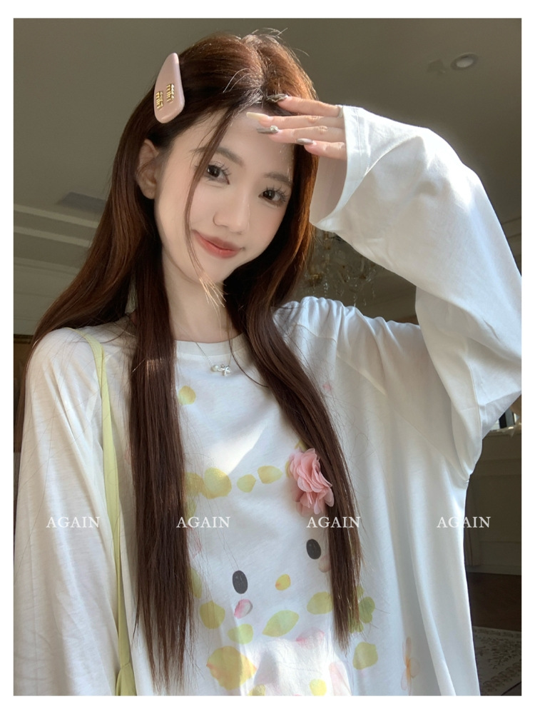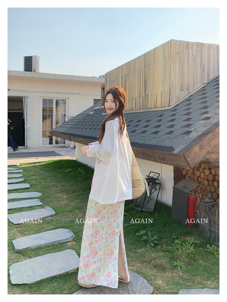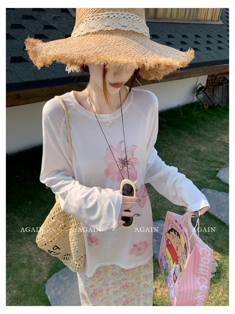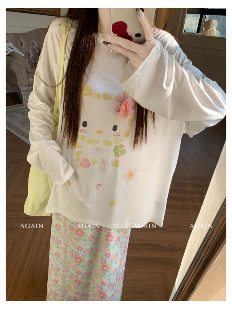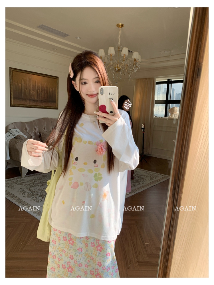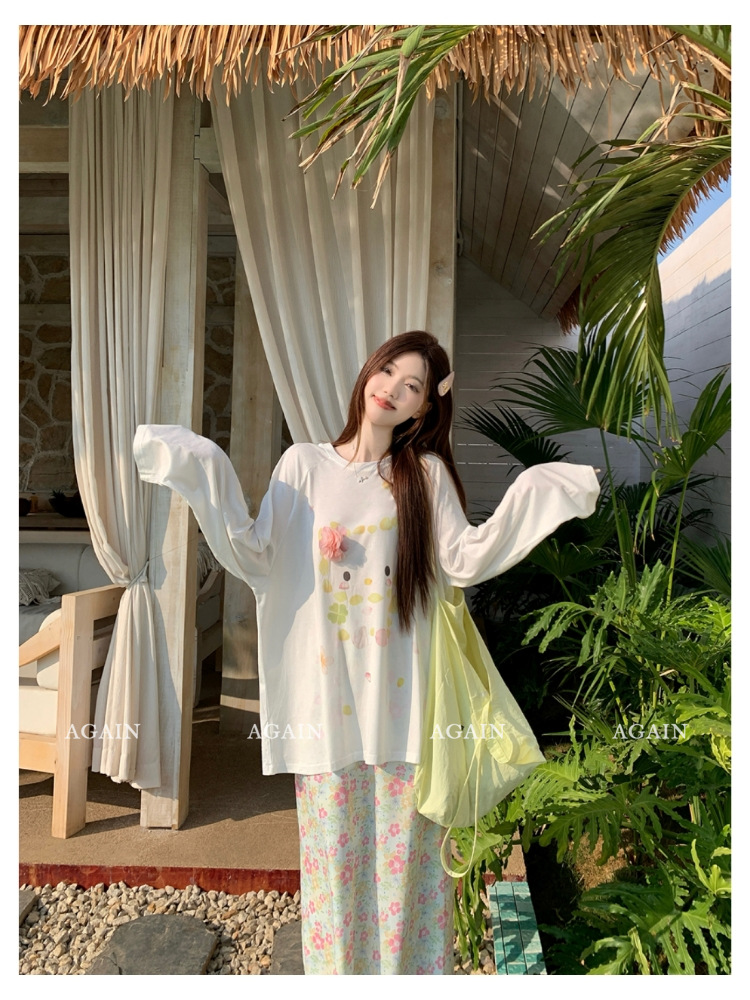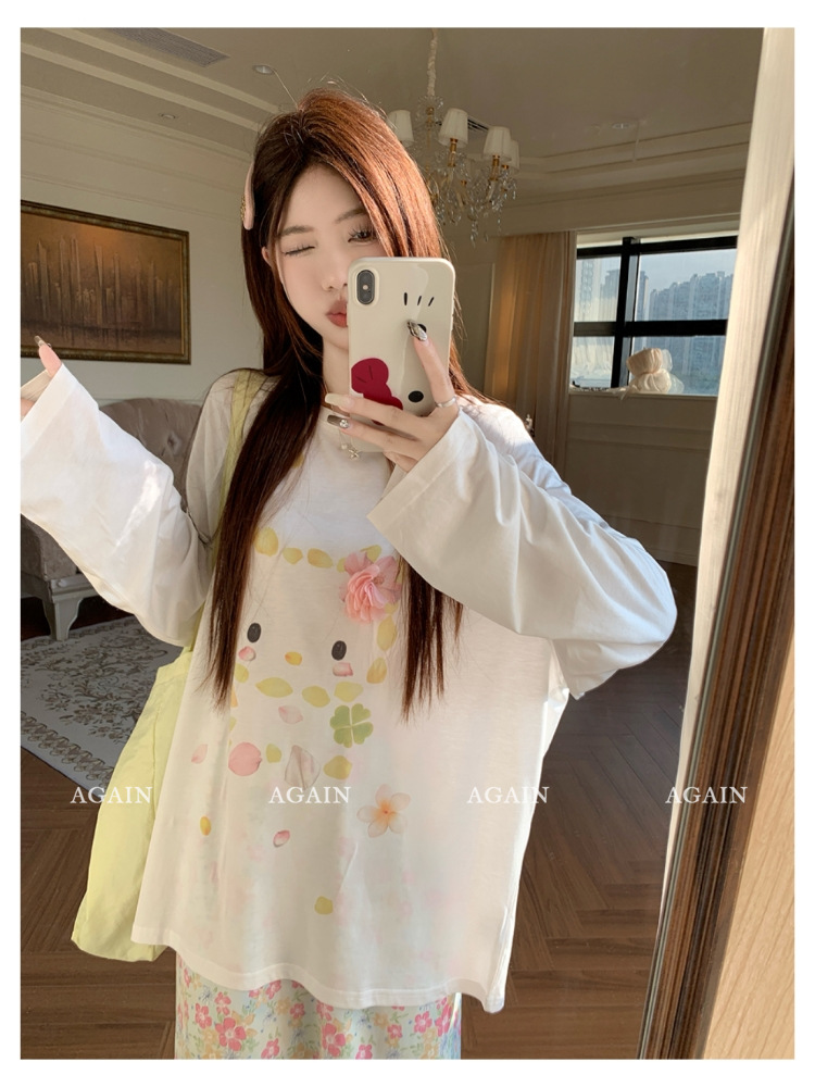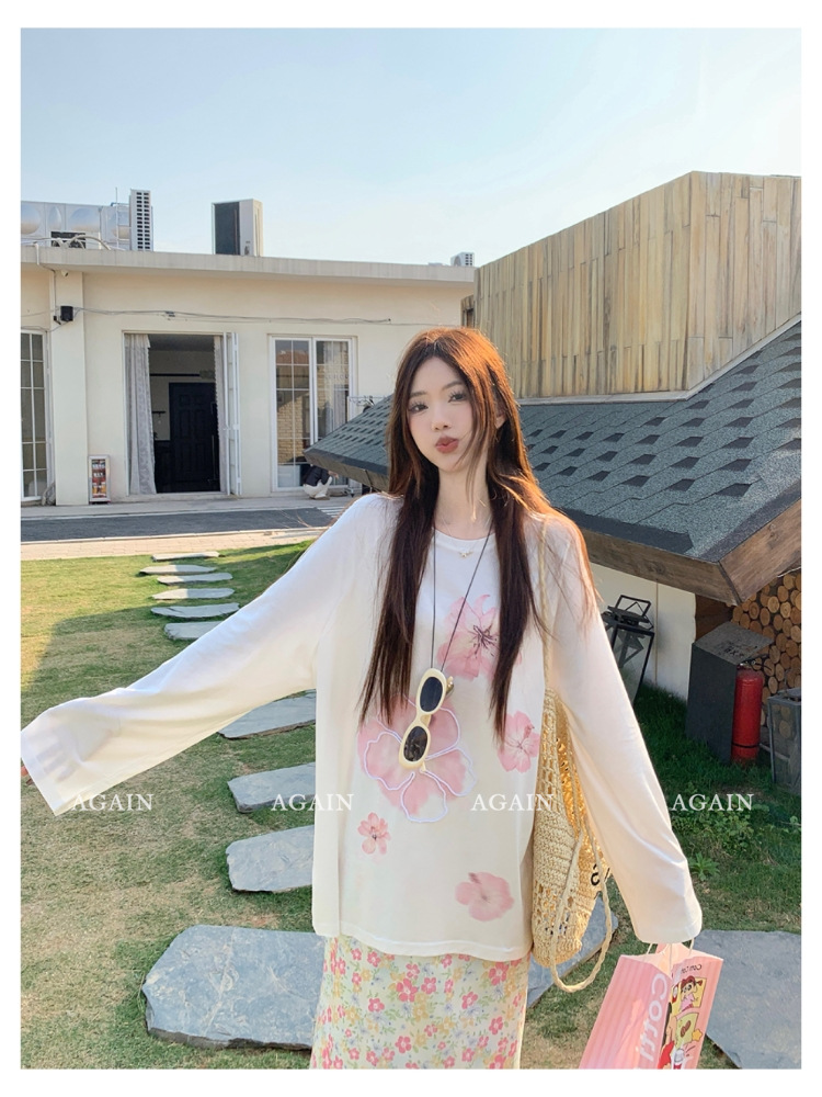 디자인 센스 인쇄 긴팔 티셔츠 여성의 2025 봄 느슨한 올매치 최고 달콤한 꽃 치마스토어 가기