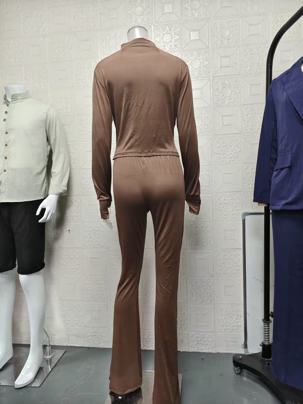 2025년 아마존 유럽 및 미국 봄 여름 신상품 크로스보더 스포츠 캐주얼 여성복 섹시한 타이트 긴팔 플레어 투피스 세트스토어 가기