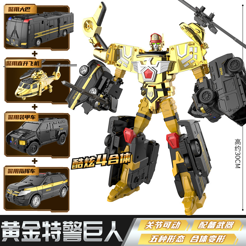 카바오 자동차 신 장난감 골드 SWAT 자이언트 4-in-1 트랜스포머 자동차 로봇 어린이 소년 카바오스토어 가기