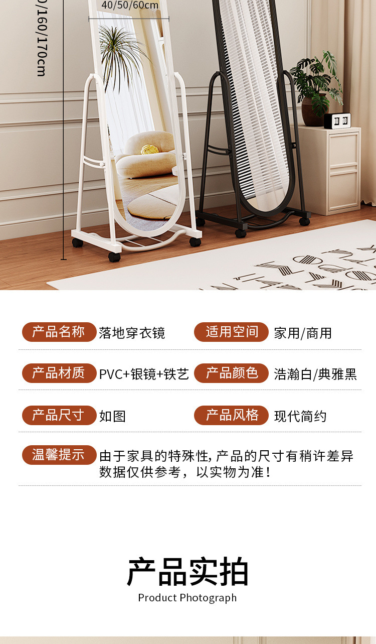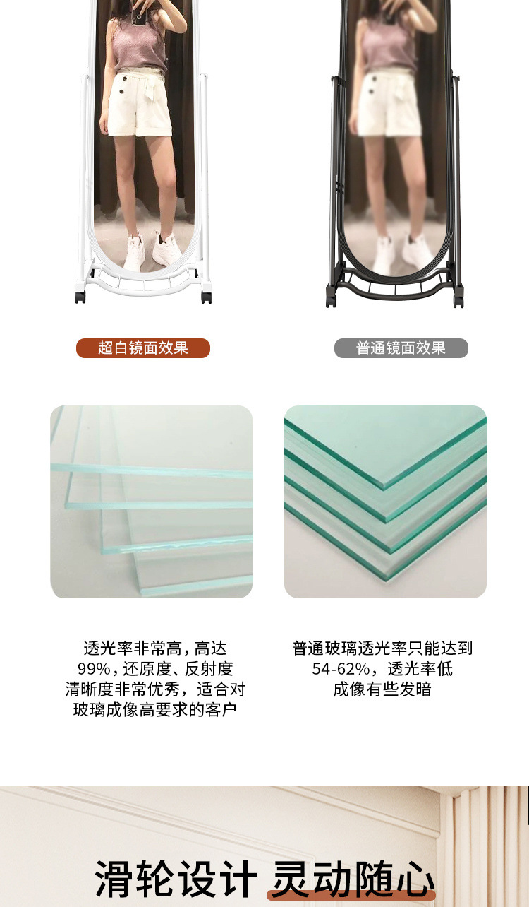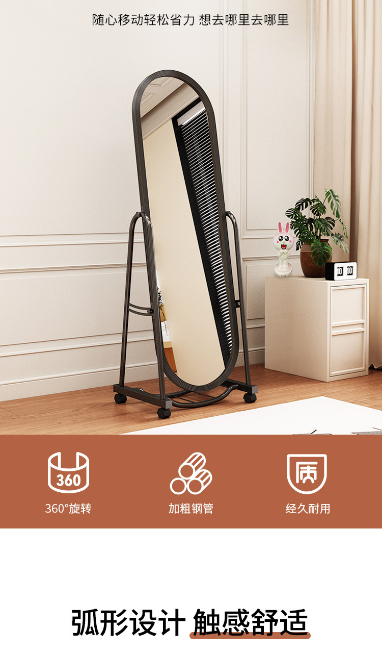 가벼운 고급 사진 거울, 전신 거울, 가정용 거울, 학생 기숙사 바닥 거울, 바퀴가 달린 이동식 방폭형 회전 전신 거울