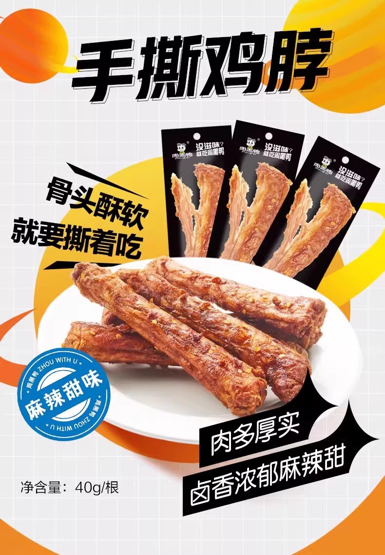 Zhou Heiya 공식 공장 상점 손으로 찢어진 닭 목 40g 싱글 팩 클래식 매운 달콤한 매운 간식
