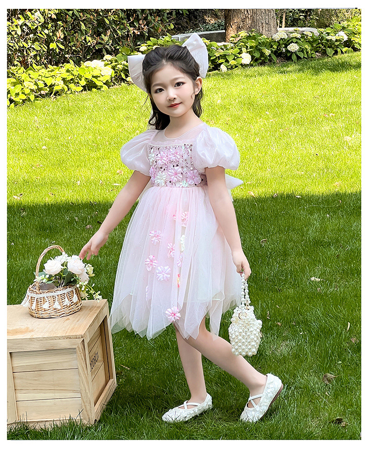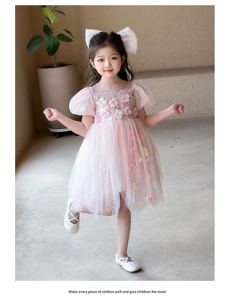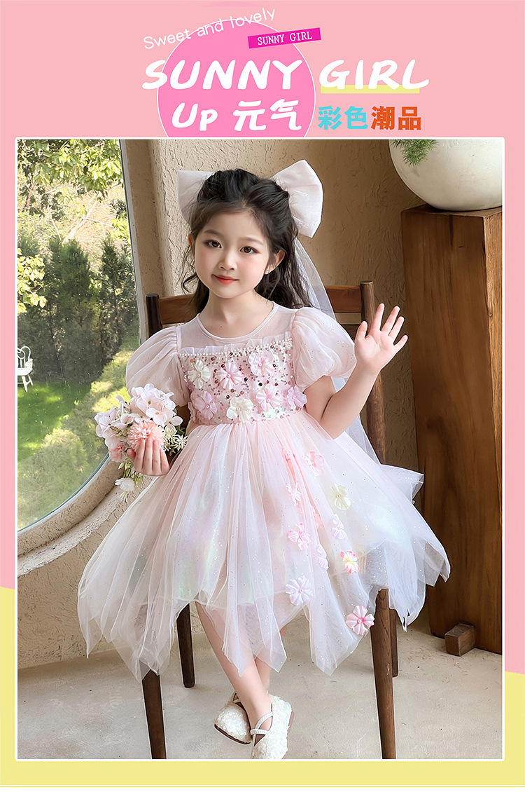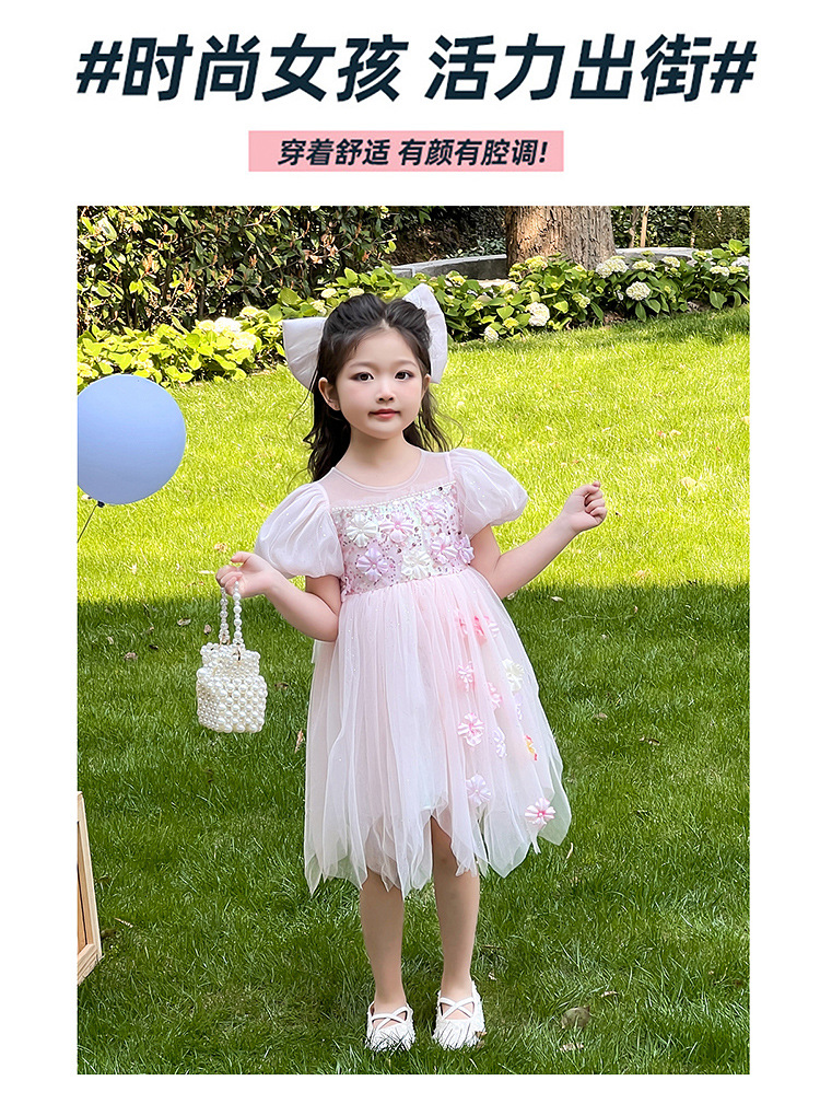 소녀 3 차원 꽃 원피스 2025 여름 새로운 패션 어린 소녀 세련된 공주 원피스 중소 어린이 여름 원피스스토어 가기