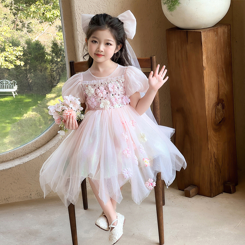 소녀 3 차원 꽃 원피스 2025 여름 새로운 패션 어린 소녀 세련된 공주 원피스 중소 어린이 여름 원피스