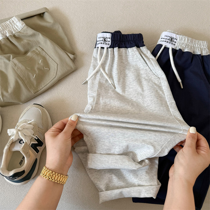 어린이 캐주얼 바지 2025 여름 새로운 한국 스타일 소녀 서양식 대비 컬러 허리 아기의 탄성 얇은 스트레이트 바지스토어 가기