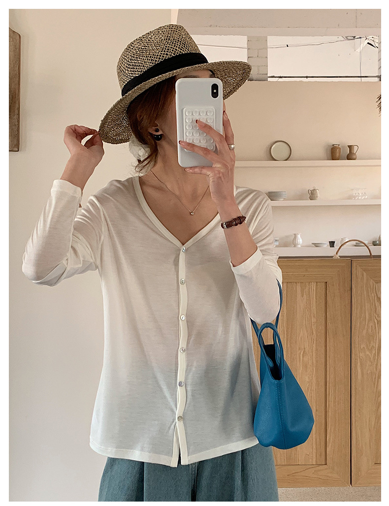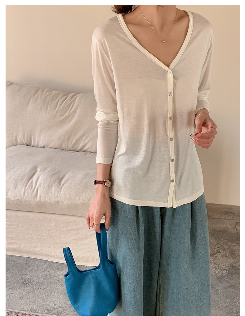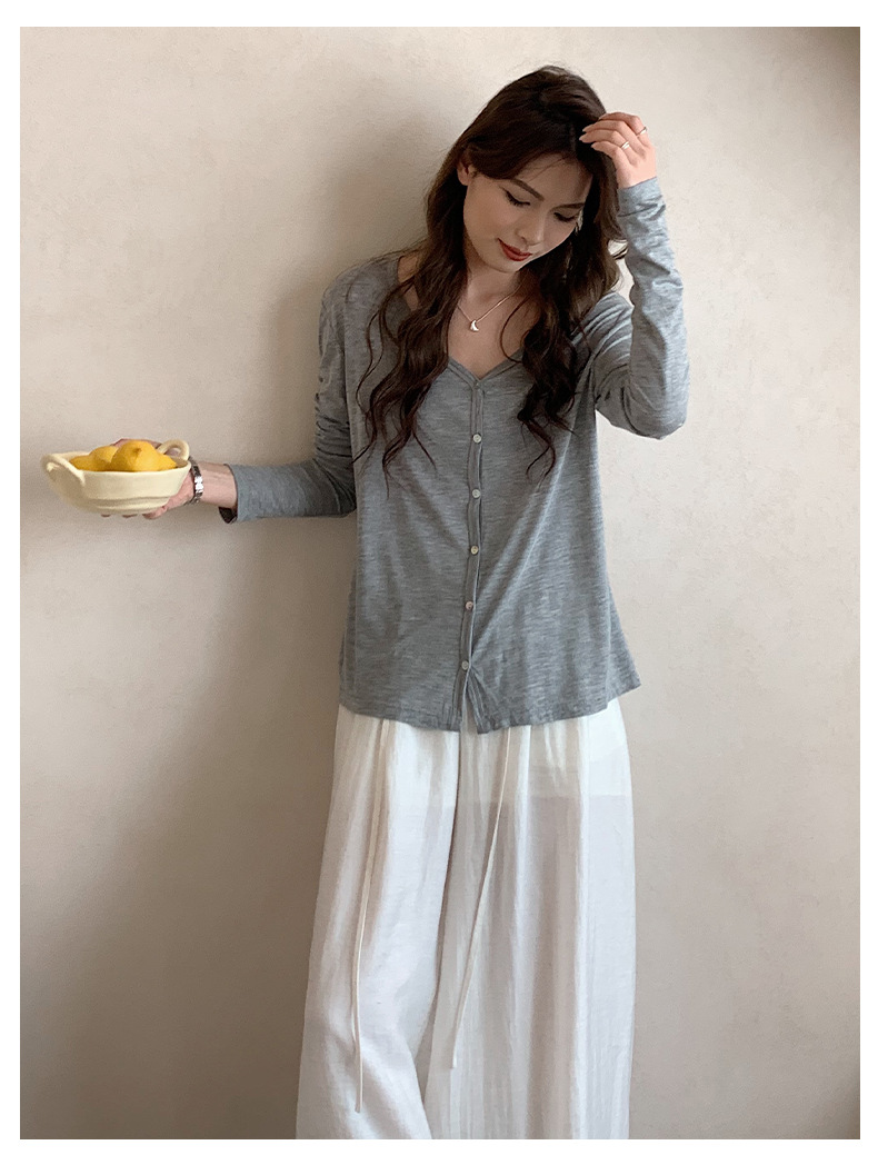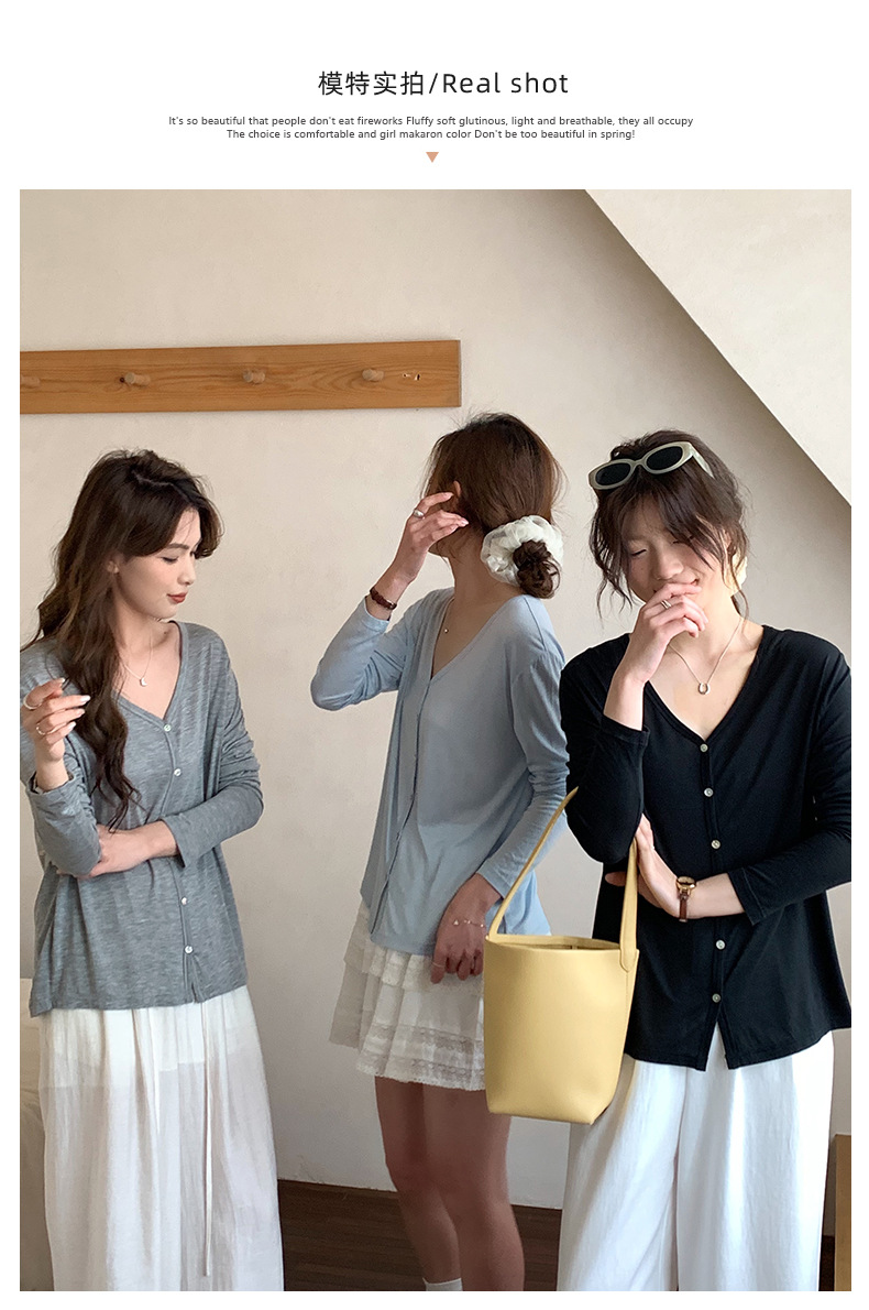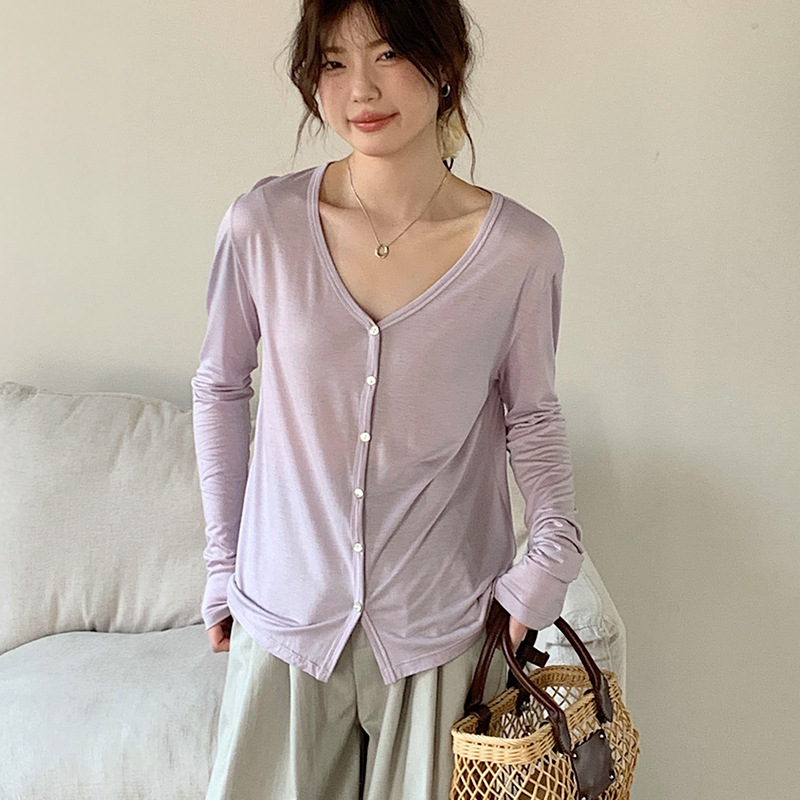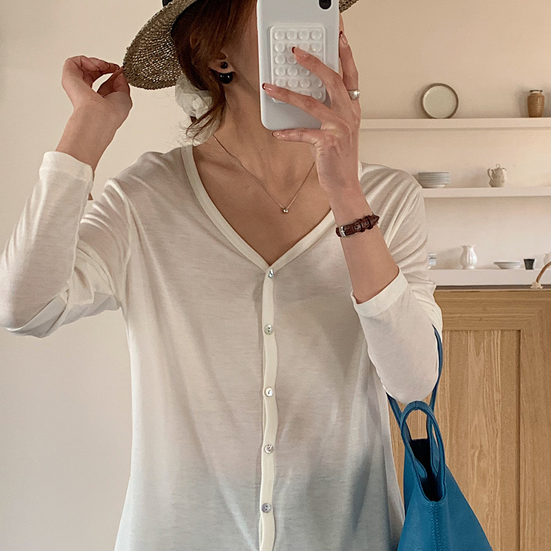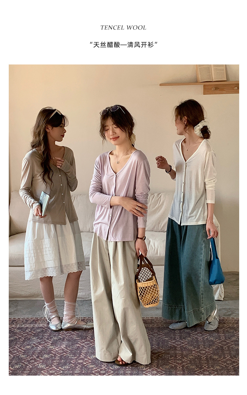 Morishima Tencel 아세테이트 카디건 여성 2025 년 봄과 여름 새로운 높은 탄성 양 울 재킷 얇은 버튼 긴 소매 탑스토어 가기