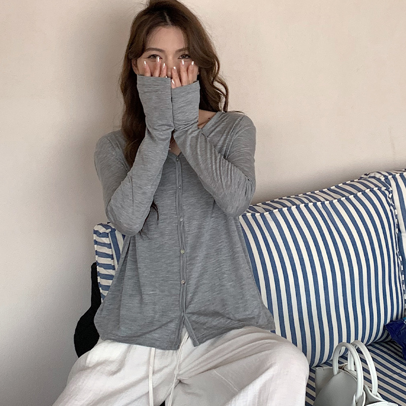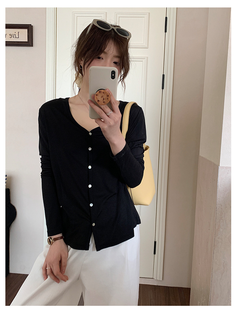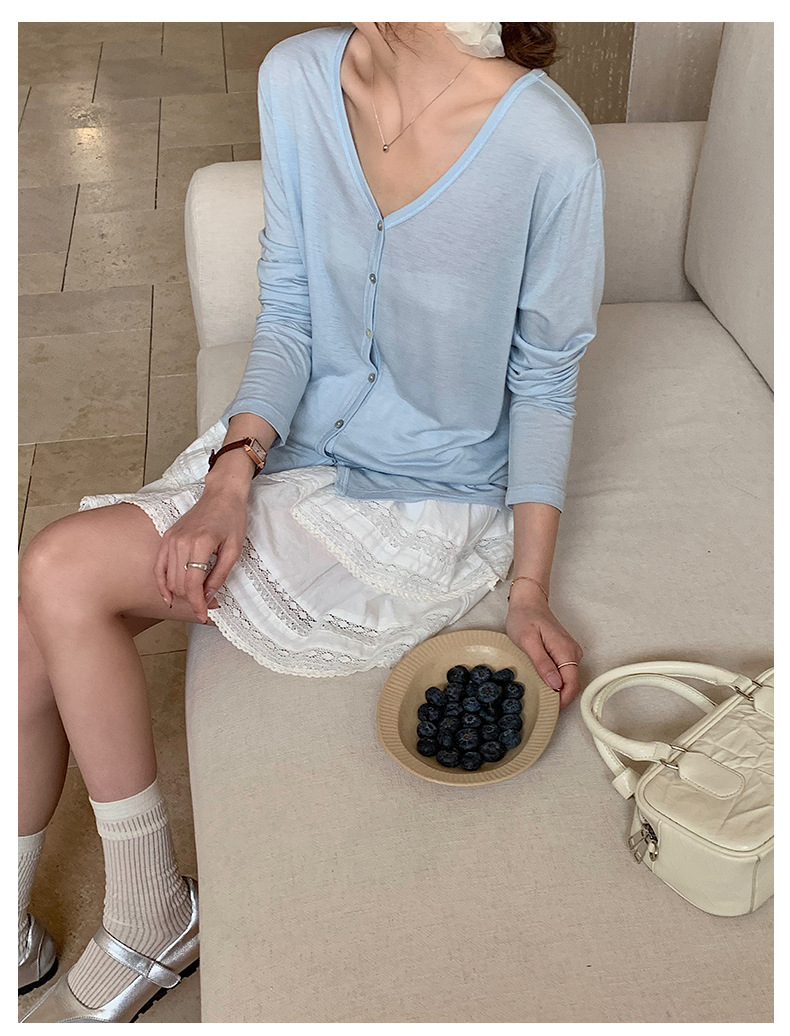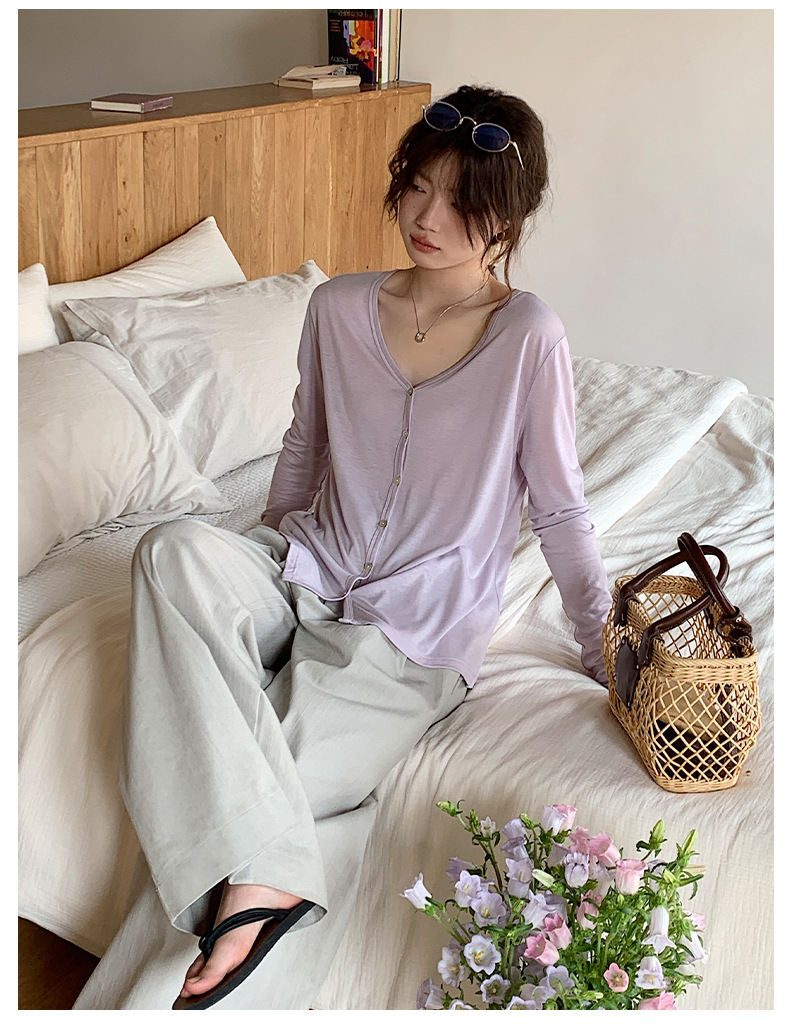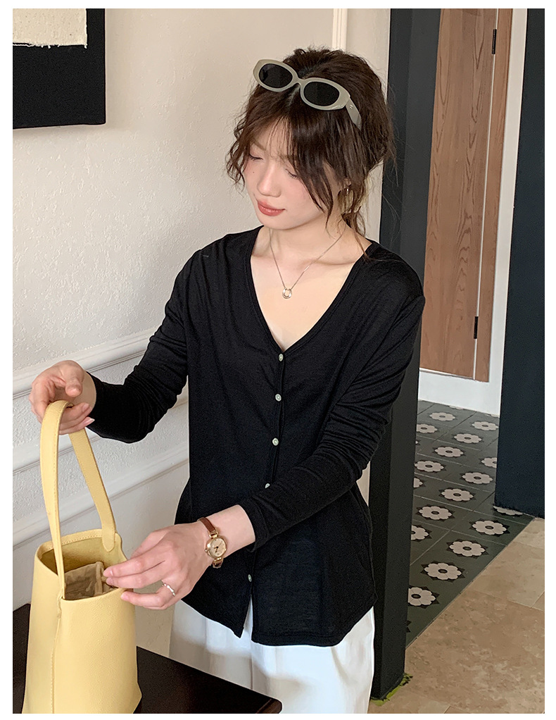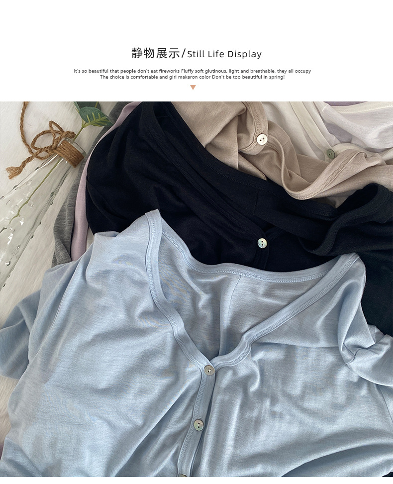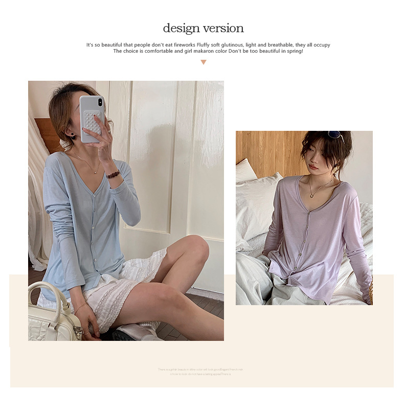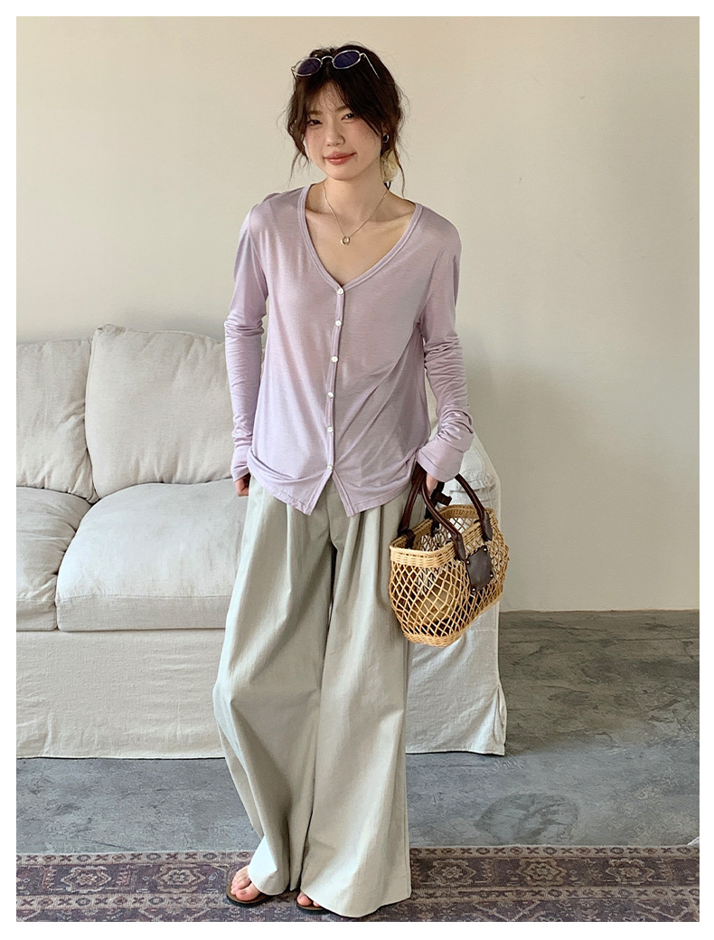 Morishima Tencel 아세테이트 카디건 여성 2025 년 봄과 여름 새로운 높은 탄성 양 울 재킷 얇은 버튼 긴 소매 탑스토어 가기