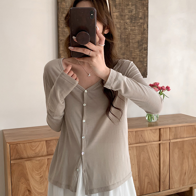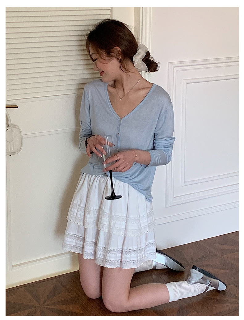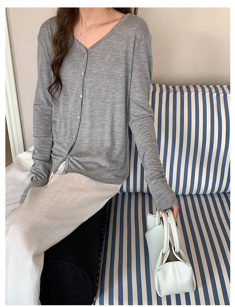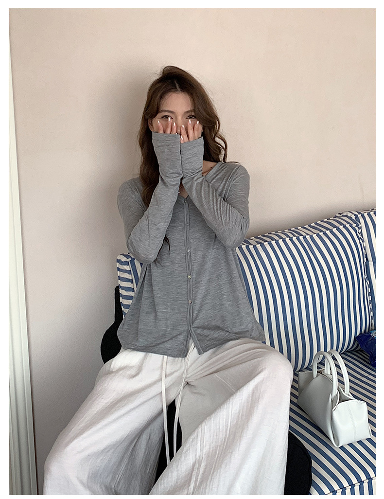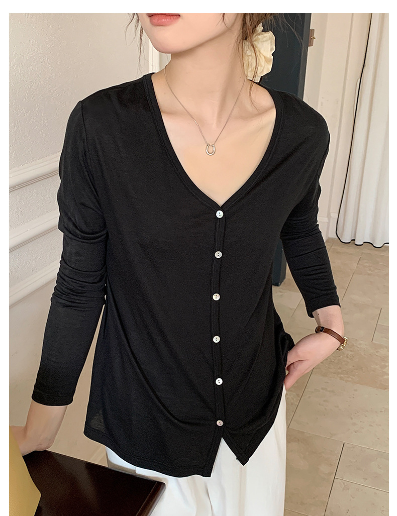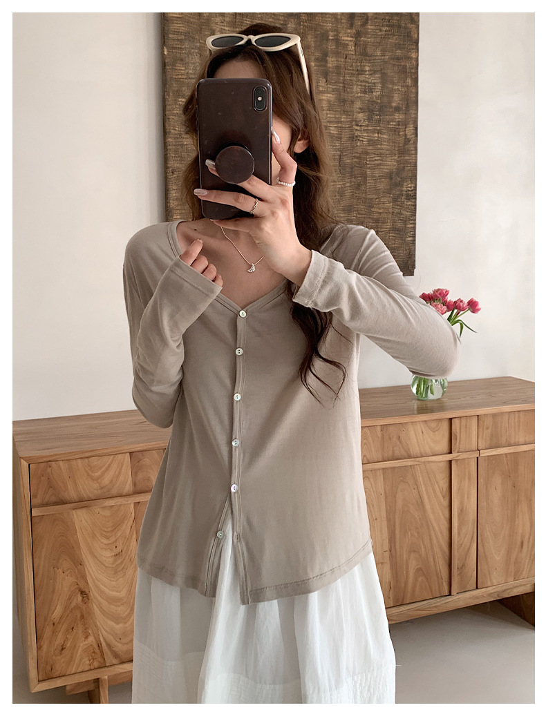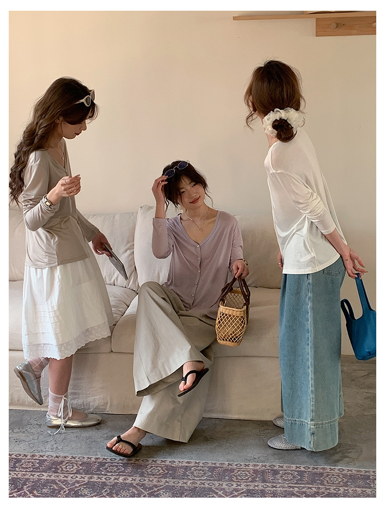 Morishima Tencel 아세테이트 카디건 여성 2025 년 봄과 여름 새로운 높은 탄성 양 울 재킷 얇은 버튼 긴 소매 탑스토어 가기