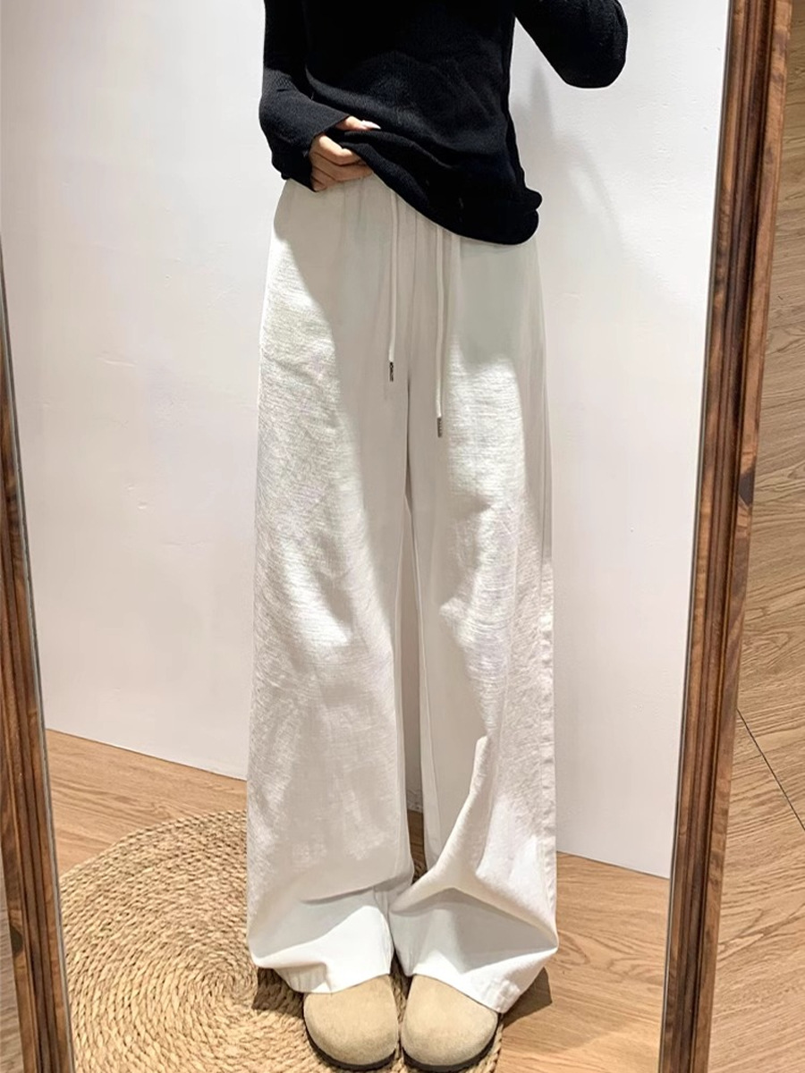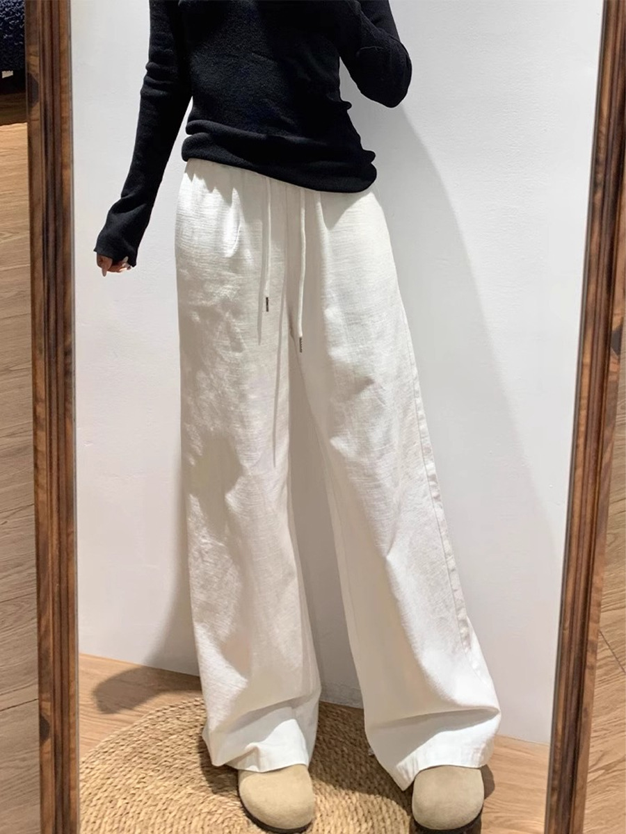 화이트 와이드 레그 청바지 여성용 2025 년 봄 새 여름 느슨한 스트레이트 슬림 면 린넨 캐주얼 바지