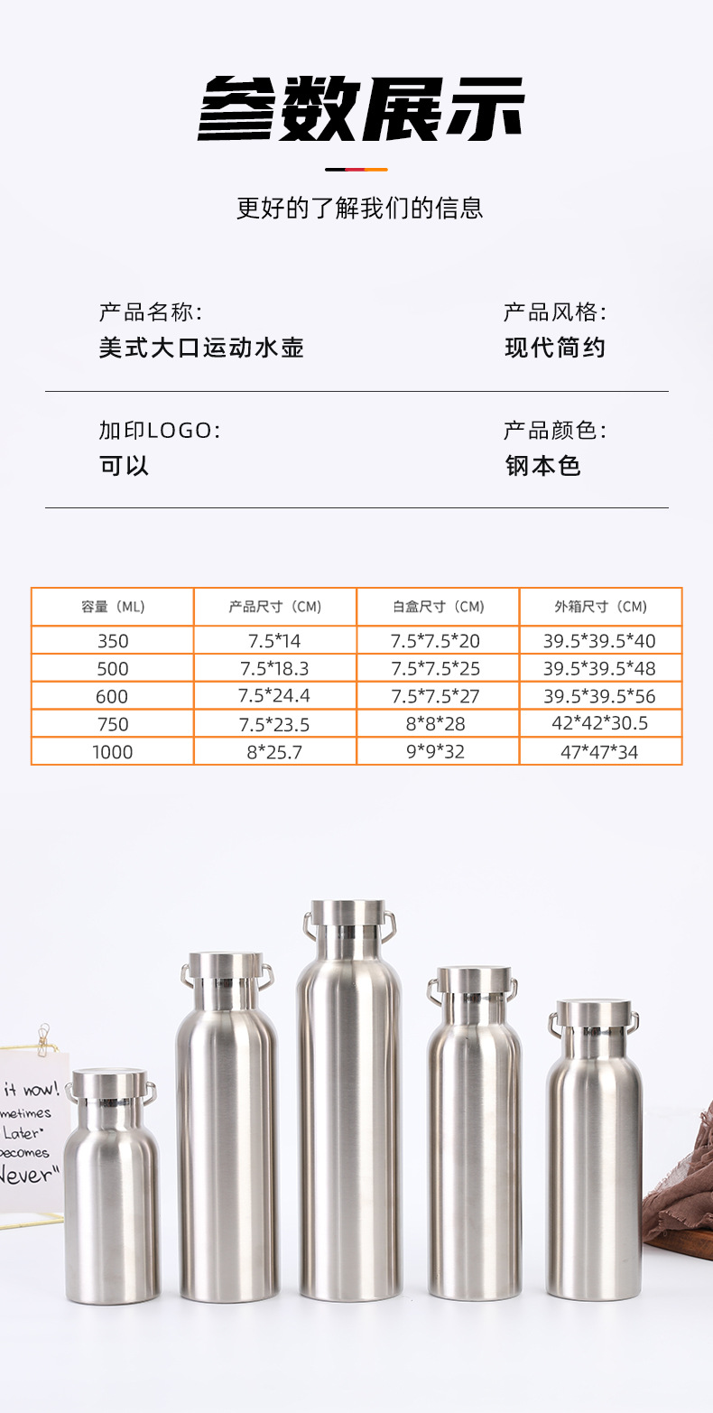 Wow 맞춤형 미국식 대형 입구 스테인레스 스틸 보온병 컵, 고급스러운 스포츠 물병, 휴대용 등산용 물병스토어 가기