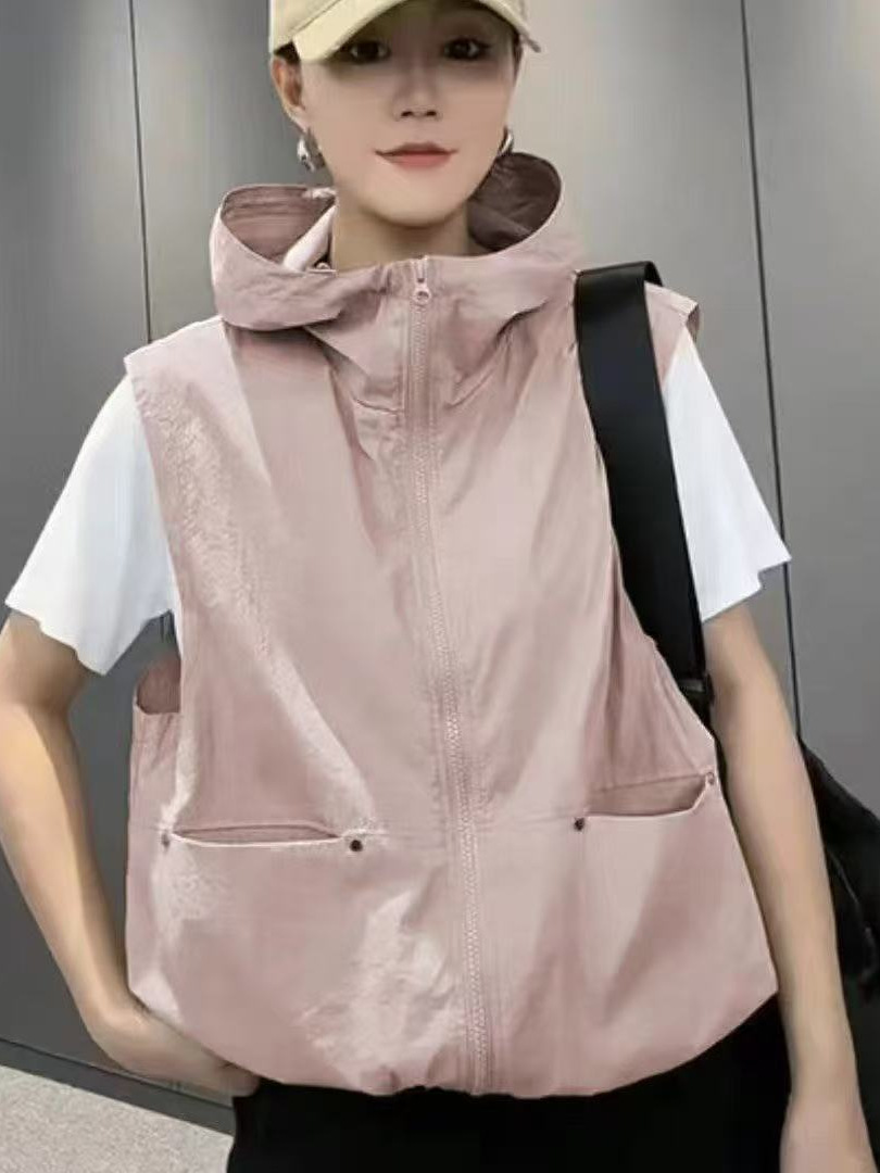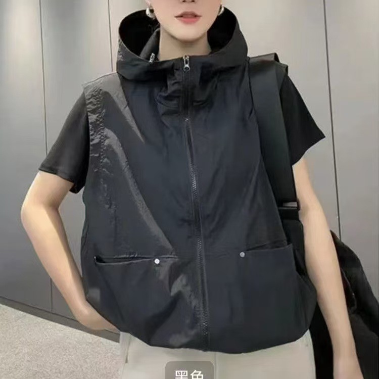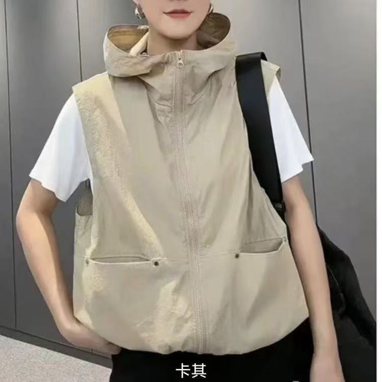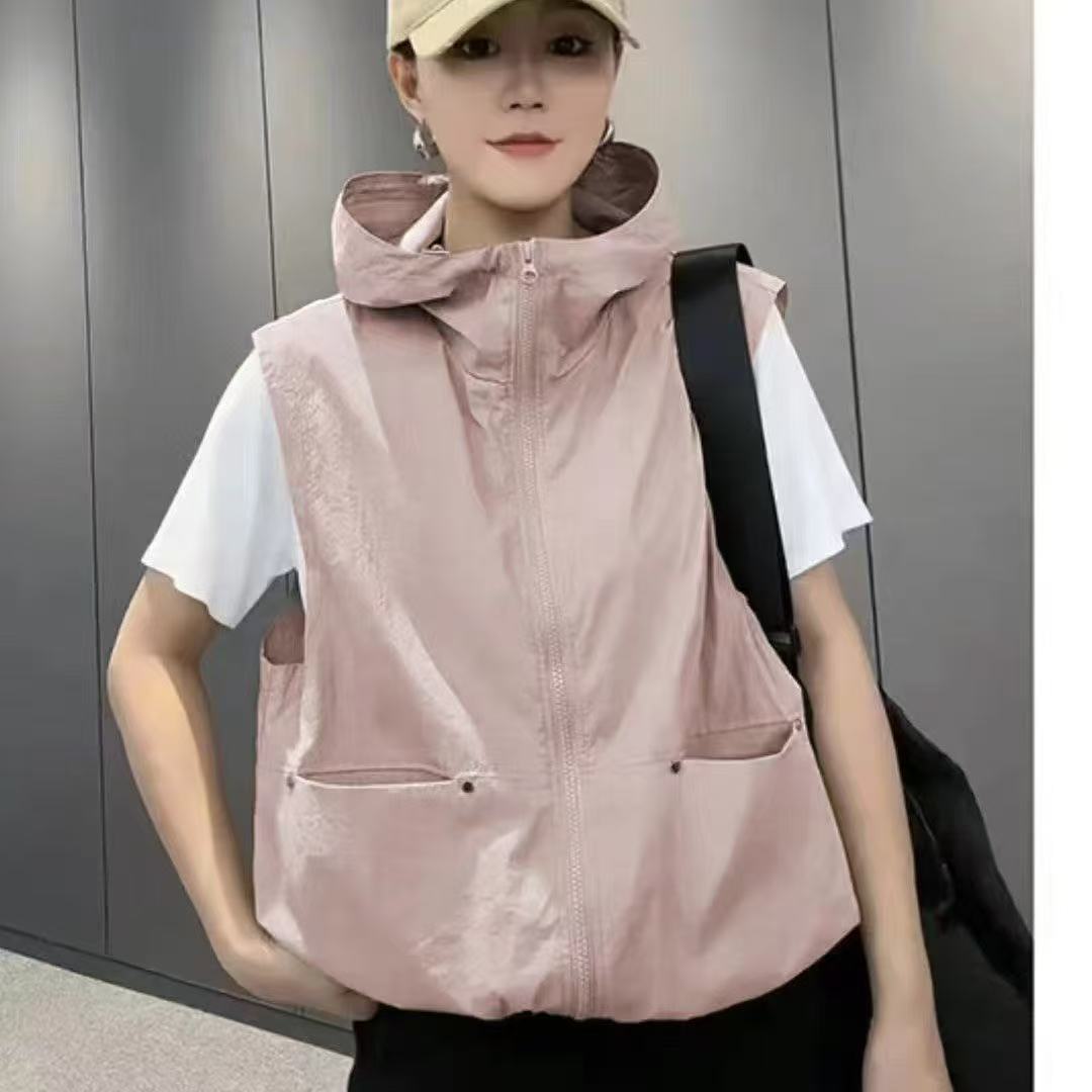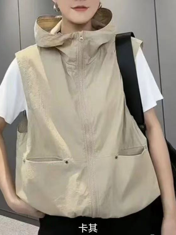 2025 봄 조끼 여성 후드 루즈 캐주얼 한국 스타일 카디건 조끼 대학 스타일 양복 조끼 게으른 스타일 조끼
