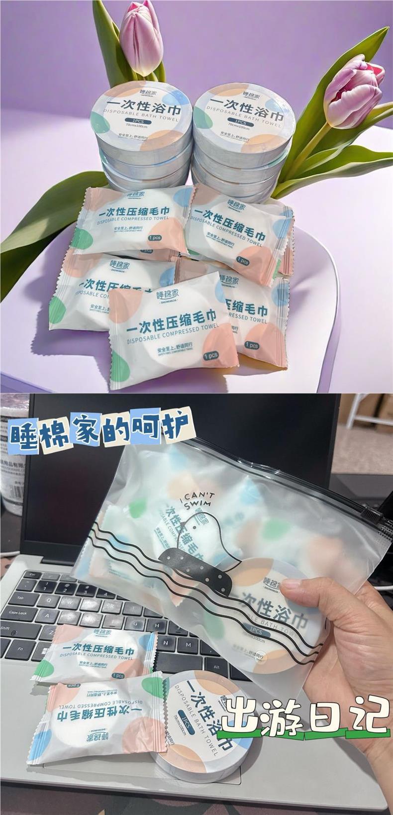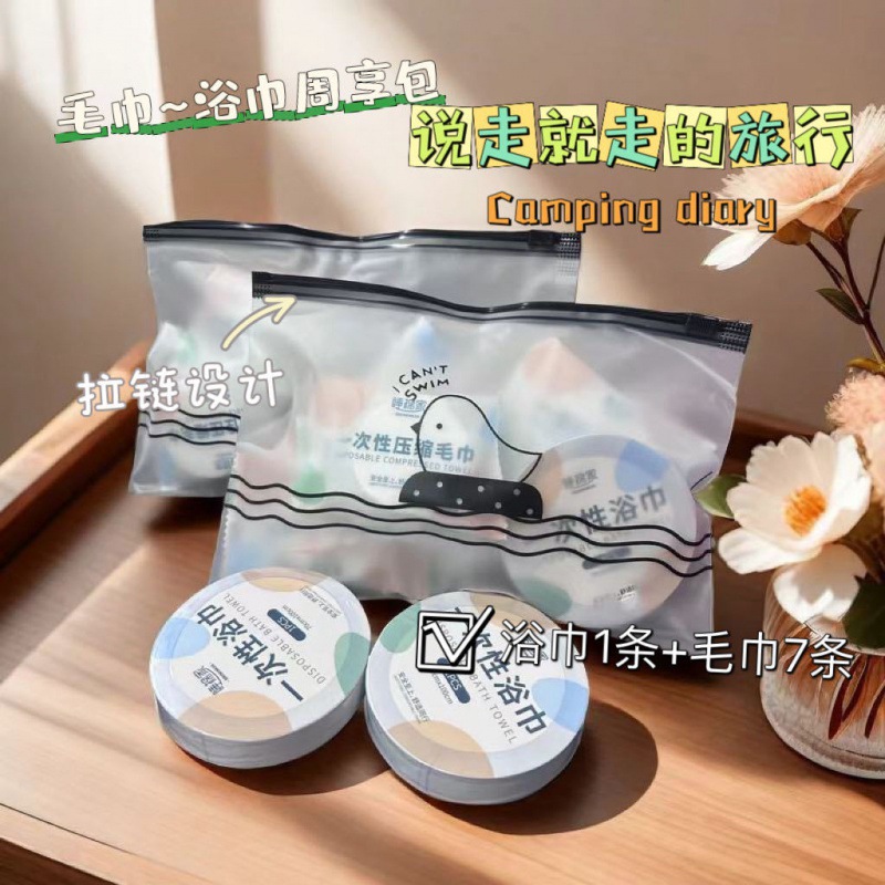 두꺼운 여행용 일회용 압축 목욕 타월 호텔 전용 두꺼운 세트 7피스 순면 두꺼운 주간 패키지스토어 가기