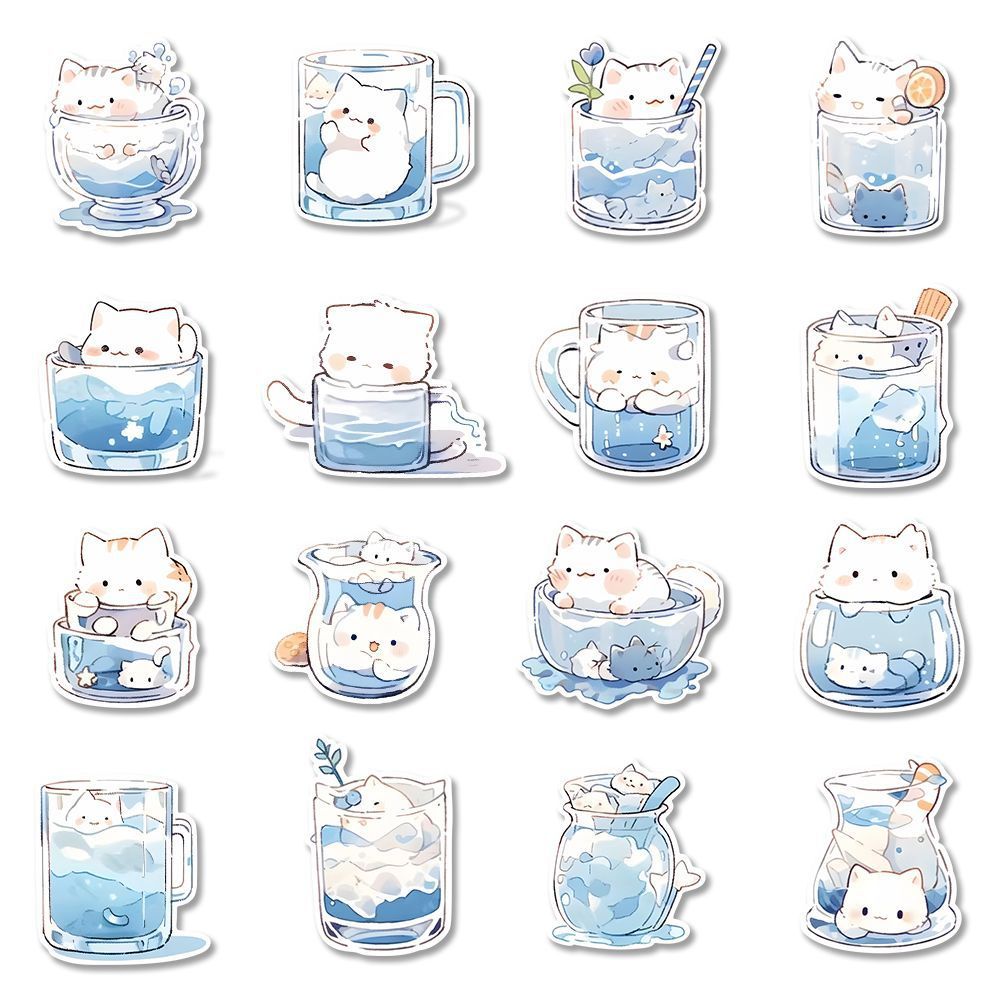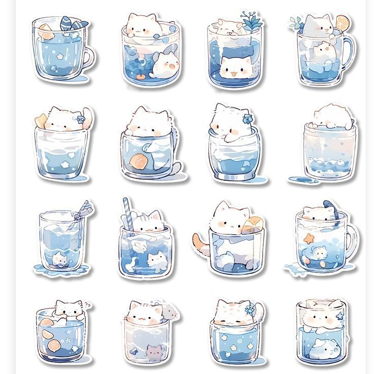 96 만화 귀여운 물 컵 고양이 스티커 인기있는 학생 핸드북 diy 장식 노트북 편지지 상자 스티커