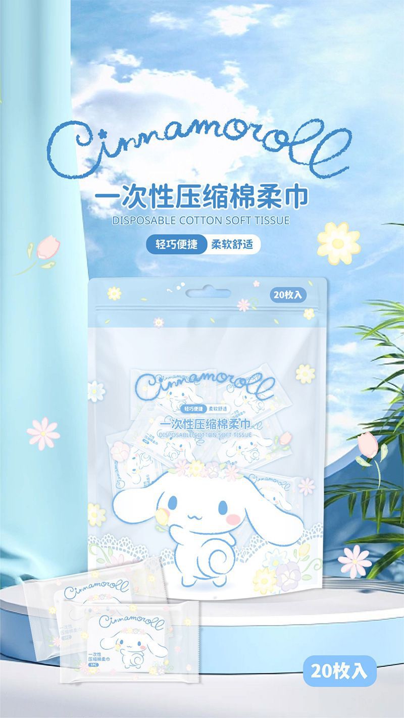 산리오 두꺼운 세안 수건 정품 압축 세안 수건 두꺼운 특대 일회용 수건 휴대용 및 보푸라기가 떨어지지 않음