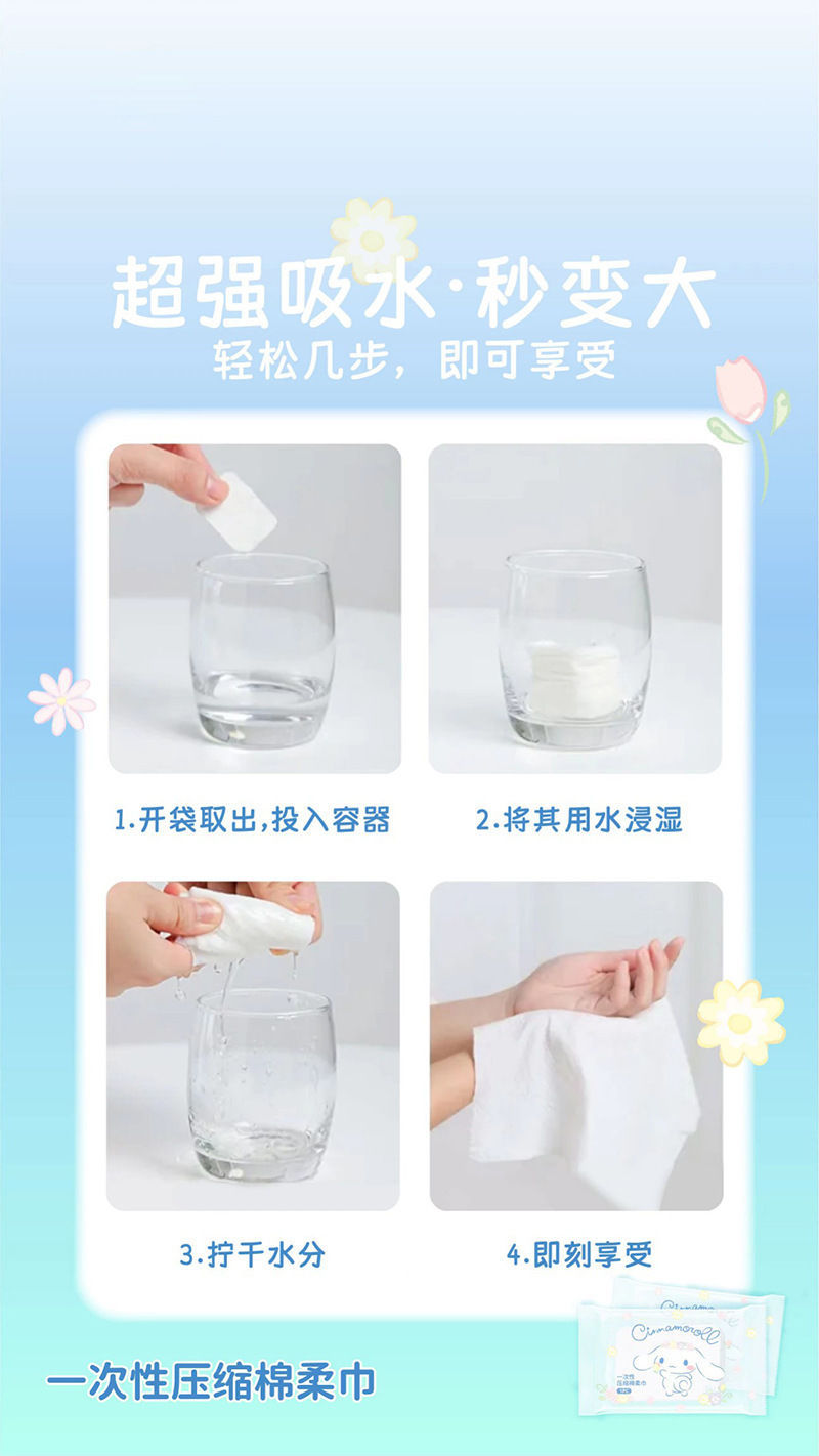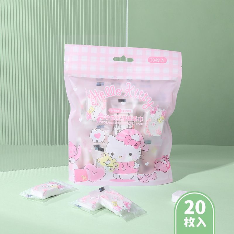 산리오 두꺼운 세안 수건 정품 압축 세안 수건 두꺼운 특대 일회용 수건 휴대용 및 보푸라기가 떨어지지 않음스토어 가기