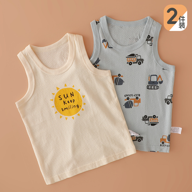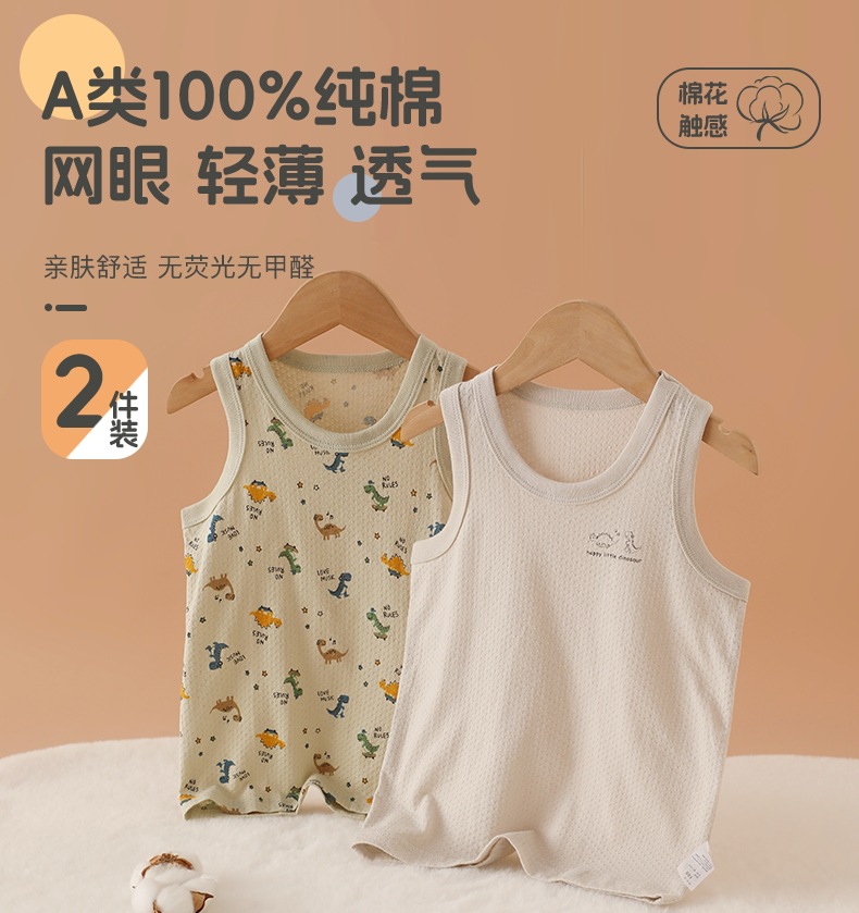 100% 코튼 베이비 조끼 여름 땀 흡수 얇은 바닥 셔츠 민소매 탑 소년 메쉬 잠옷 카테고리 A 2 팩