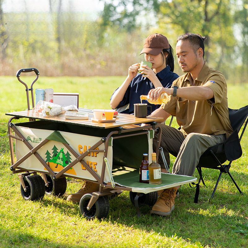 캠핑 카트, 캠핑 피크닉, 접이식 테이블, 야외 휴대용 스톨, 손으로 당기는 소형 트레일러